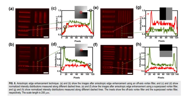 随机激光边缘增强成像研究:尽管光学图像蕴含丰富信息,但大多数关键信息集中于边缘轮廓上。因此,具有希尔伯特因子exp(ilθ)相位特性的光学涡旋因满足径向希尔伯特变换条件,越来越多地被用于边缘增强成像。我们通过采用空间光调制器(SLM)作为涡旋滤波器,并通过改变涡旋奇点位置实现离轴涡旋滤波,基于随机激光器实现了各向同性与各向异性边缘增强成像技术。