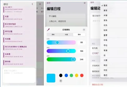 除了AI生成日程,它也可以新建单个日程,包括:日程名字、具体描述、日程颜色、开始时间、结束时间、是否重复、重复频率。