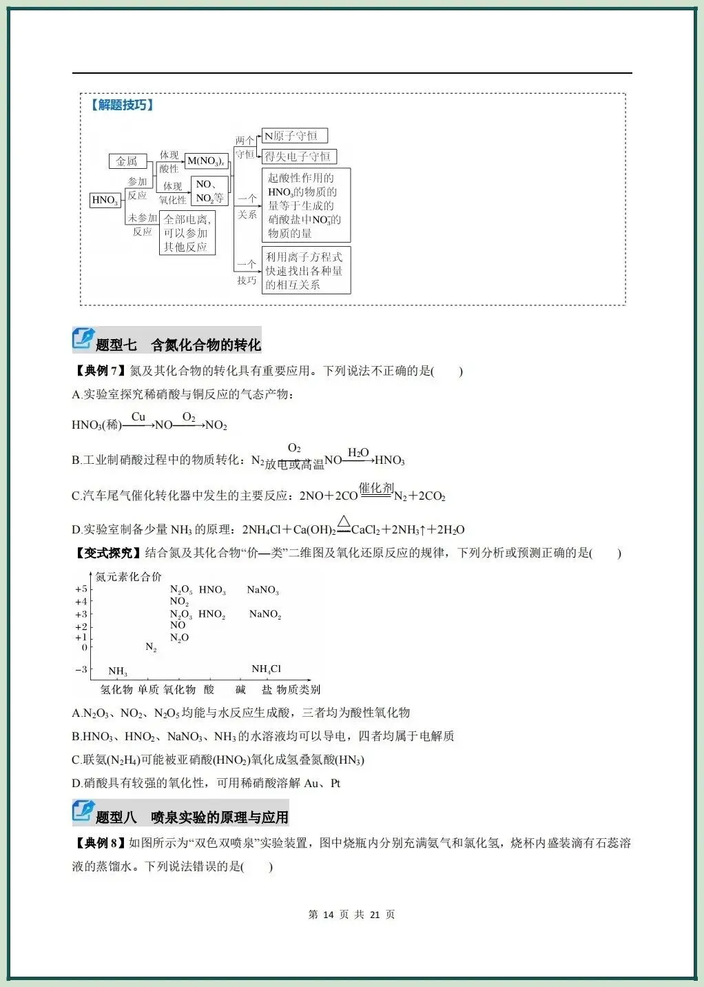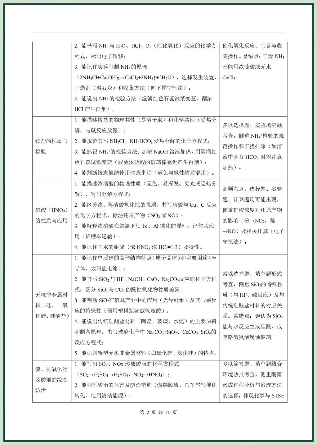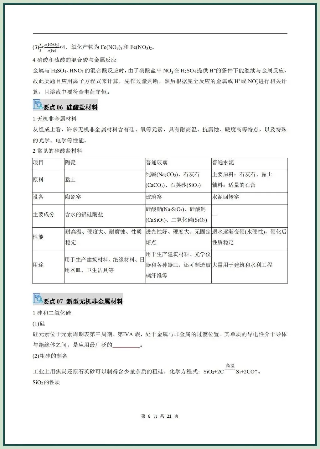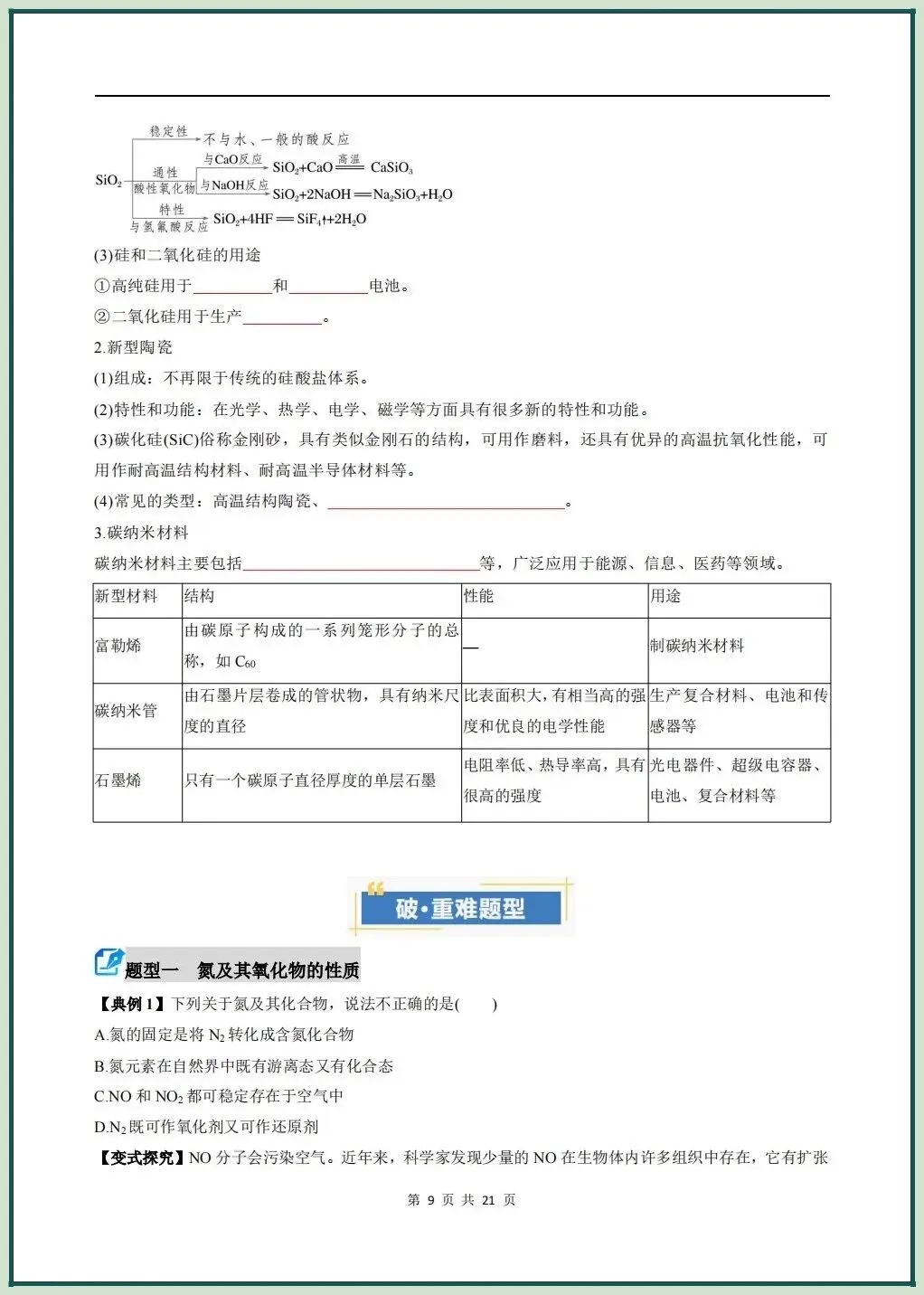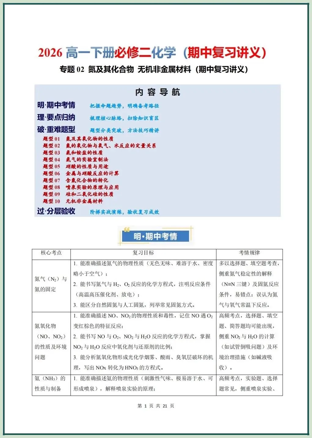 2026新版高一下册必修二化学(人教A版)期中复习讲义氮及其化合物无机非金属材料,电子版可打印下载!