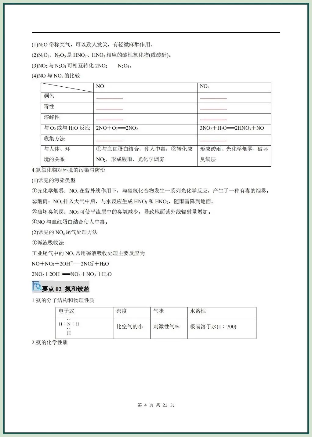 2026新版高一下册必修二化学(人教A版)期中复习讲义氮及其化合物无机非金属材料,可打印下载!