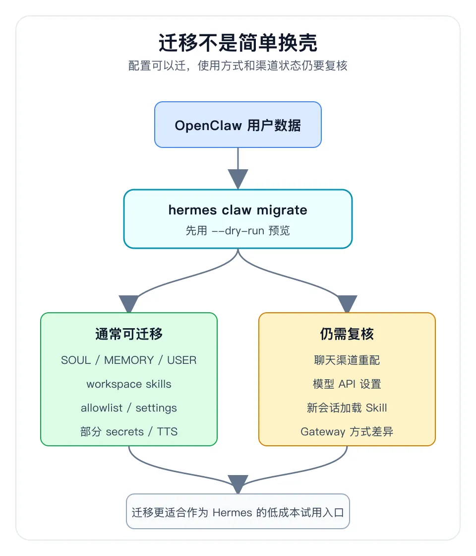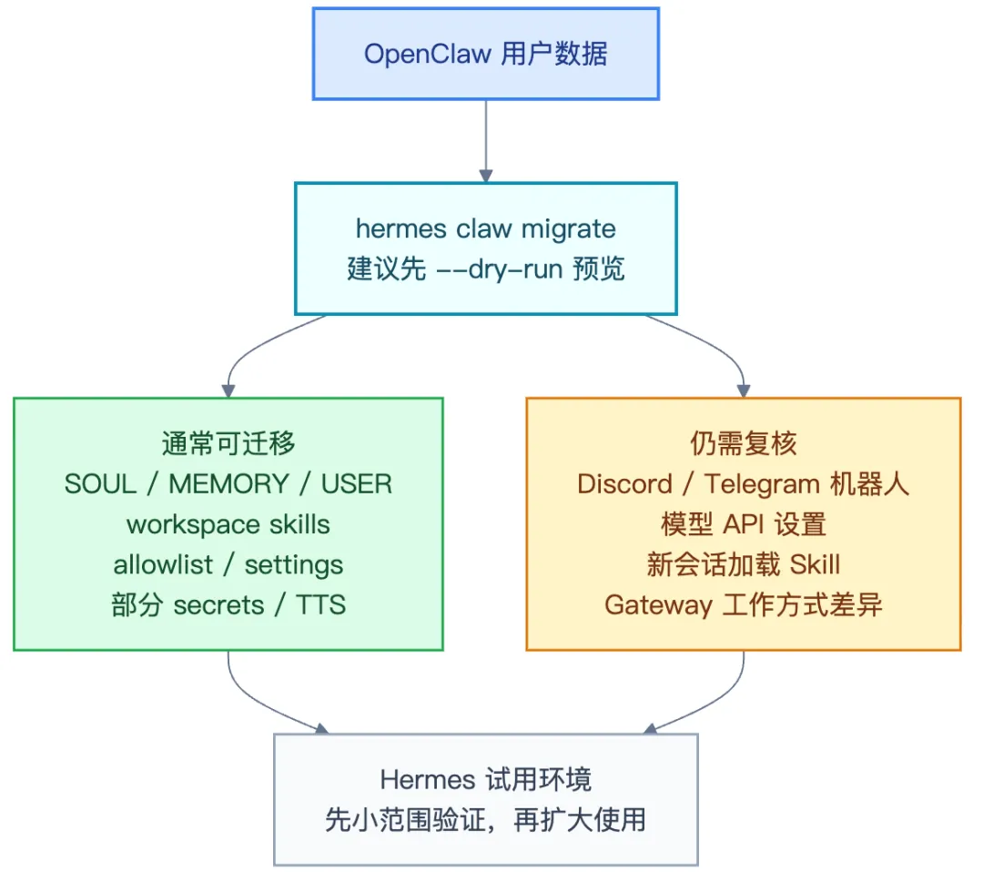 把迁移当成试用 Hermes 的低成本入口,而不是”一键把 OpenClaw 变成 Hermes”。