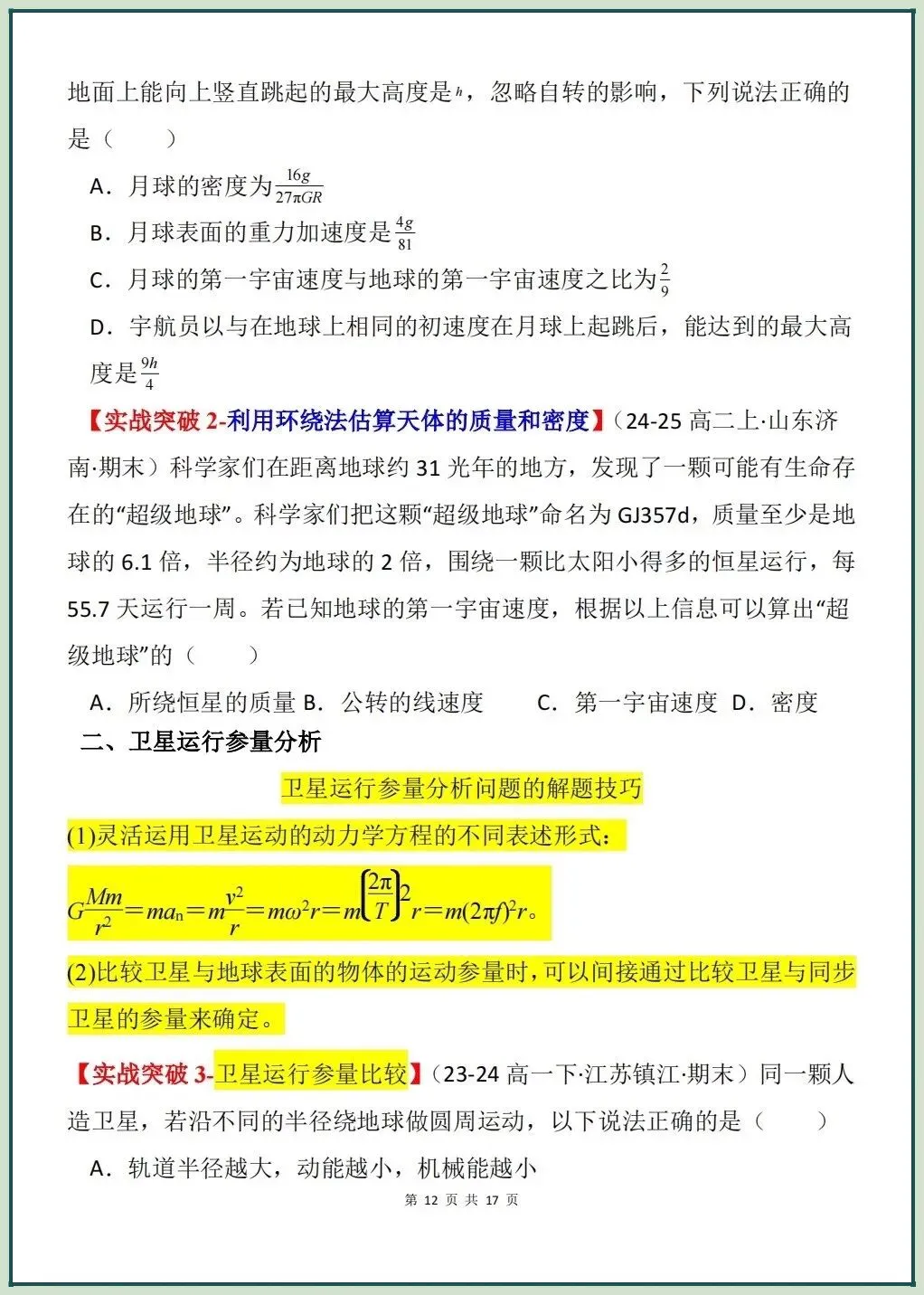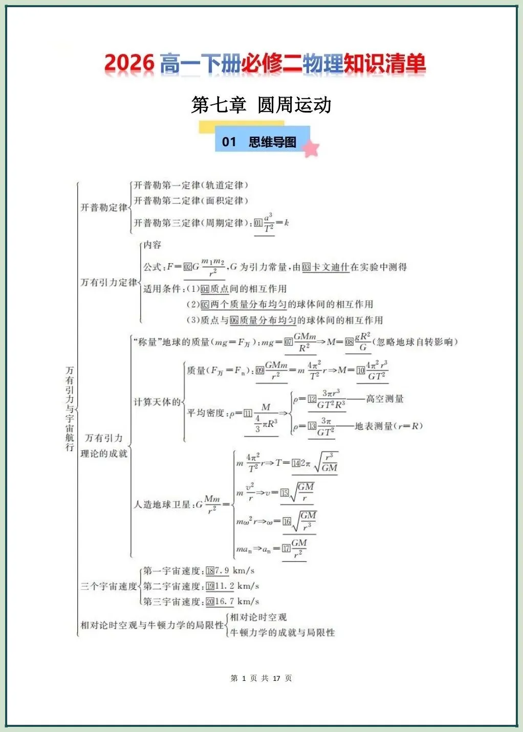 2026新版高一下册必修二物理(人教A版)第七章圆周运动知识清单(学生+教师版)电子版可打印下载!