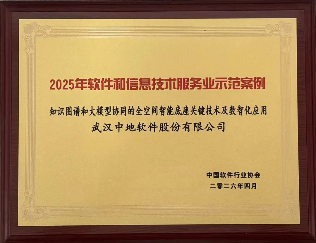 同时中地软件落地的“知识图谱和大模型协同的全空间智能底座关键技术及数智化应用”荣获2025软件和信息技术服务业示范案例,该项目实现了从数据组织、知识构建到智能推理的全链路技术创新,成果已成功应用于国家智能地质调查,广东、湖南、湖北、江西等省级自然资源、地质矿产数字底座,上海、深圳、济南等城市级时空数字底座等重大信息化工程,形成了显著的经济社会效益,未来将持续从可视化展示向智能预测、推演决策升级。