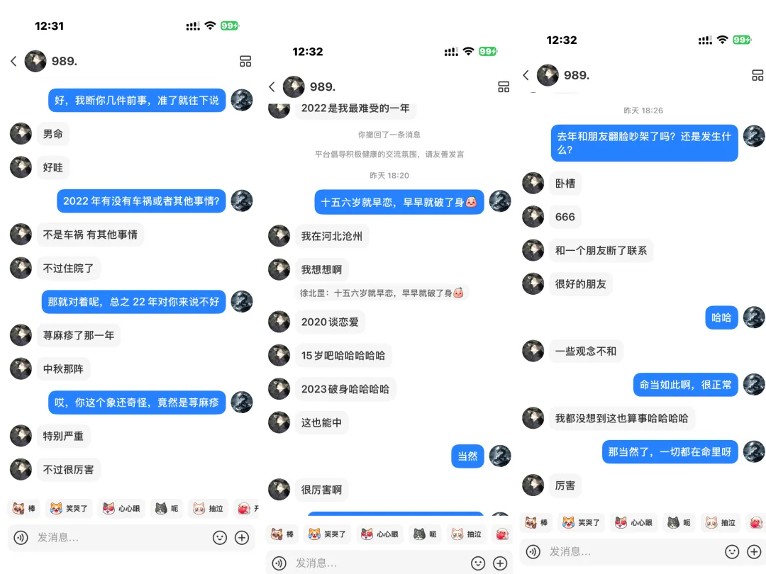 后面我们又从小红书转到微信,断了他的六亲父母,无一不准!