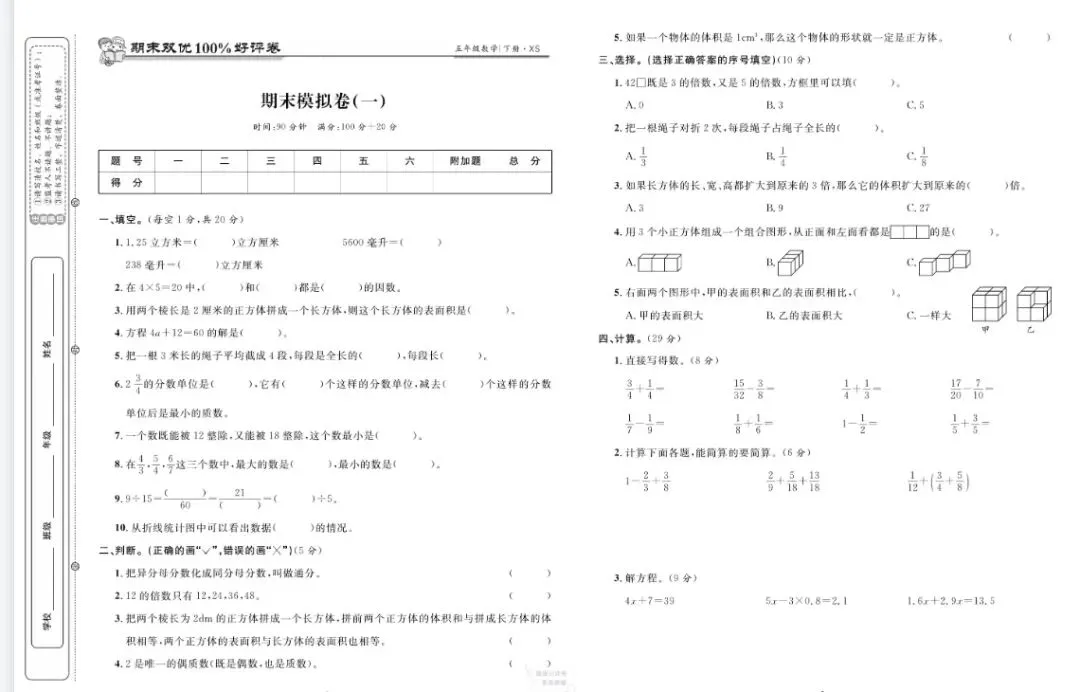 《期末双优100%好评卷》西师版数学1-5年级下册丨PDF电子版,可下载打印