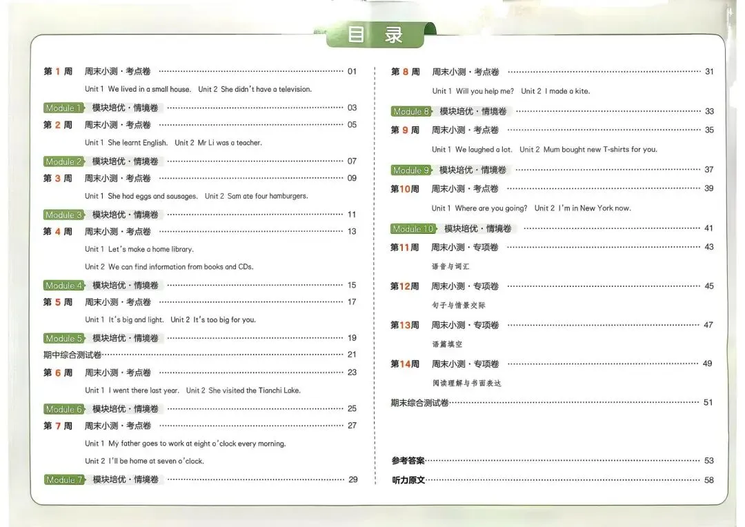 大家好,我是七宝妈,专注于1-9年级教育教学资源分享,今天给大家分享的是:专项练习|26春 小学英语 外研版《一本周末小测卷》五年级下册,PDF电子版资料可下载打印。文章末尾点击“阅读全文”可直接领取,欢迎收藏和下载。如果觉得这份资料不错,建议分享到班级群或年级群,让其他家长也打印出来,帮助孩子学习;如果觉得合适,请支持正版!