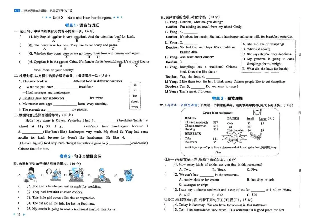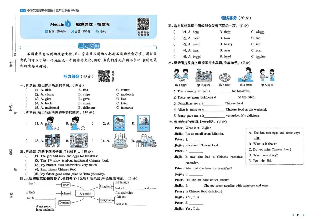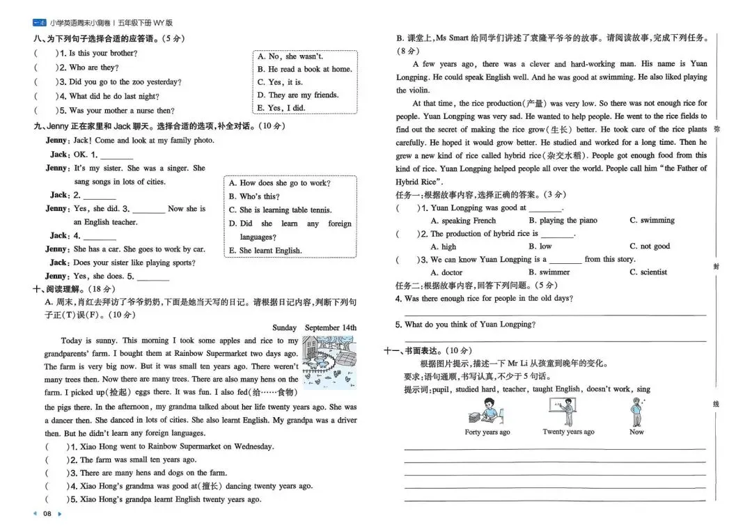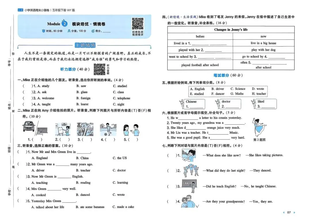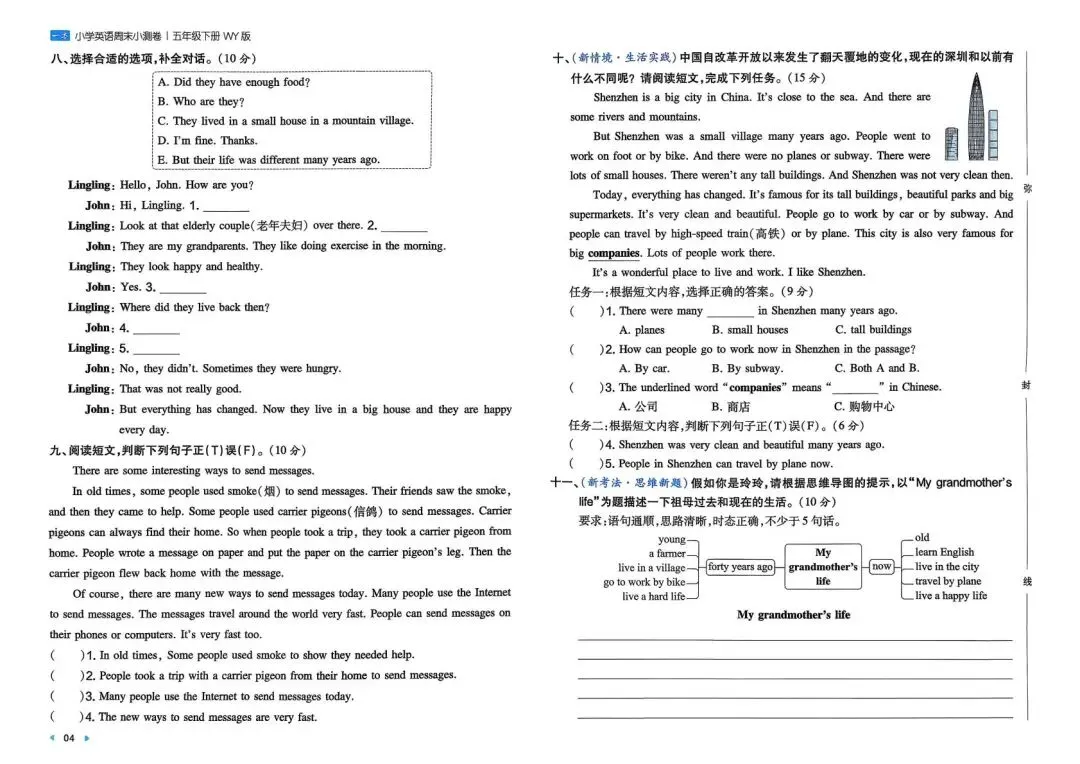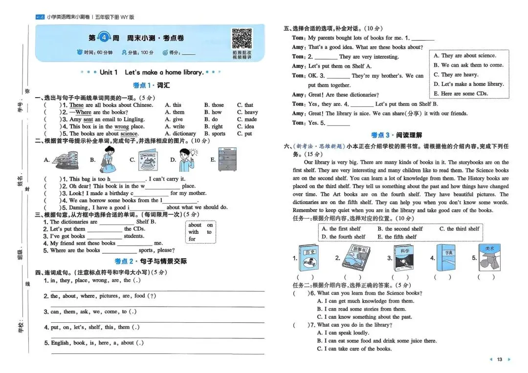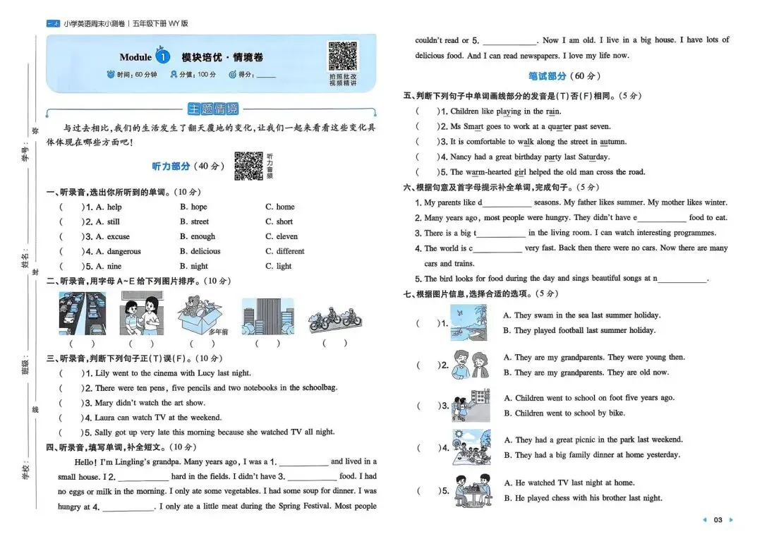 专项练习|26春 小学英语 外研版《一本周末小测卷》五年级下册 ,附链接可下载打印-拷贝