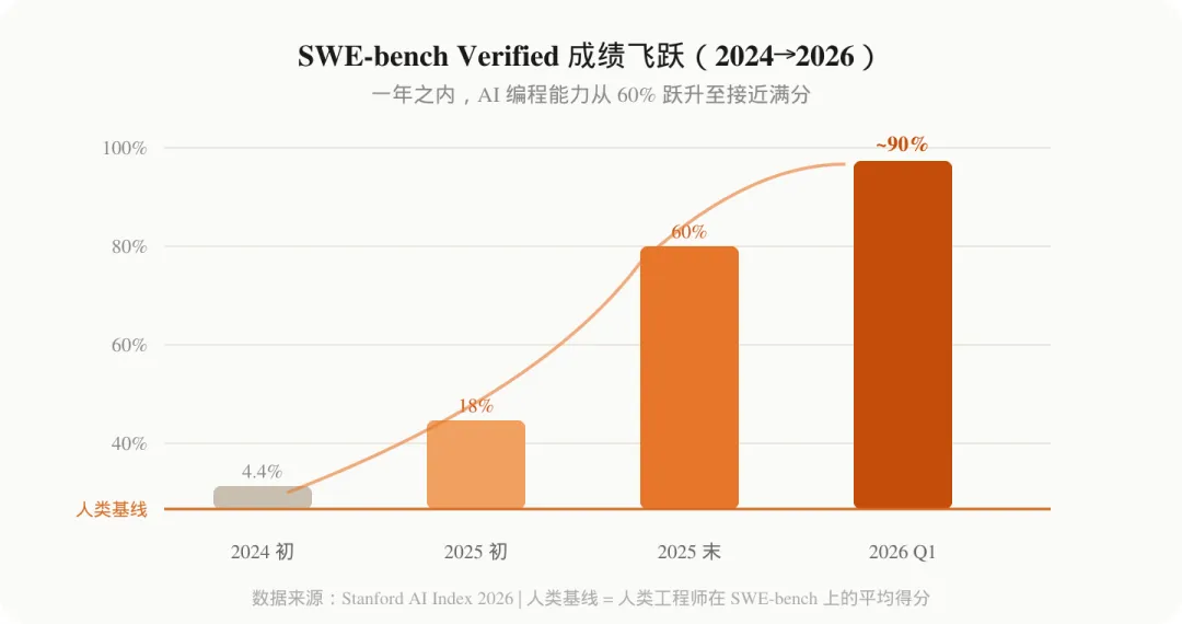 如果要用一个数字概括 2026 年 AI 的技术进步,那就是 SWE-bench。