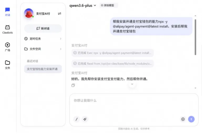 如果你正考虑学AI编程,与其纠结「怎么开始」,不如直接动手。先搭一个能用的智能体,让它帮你干点实际的事。比如用OpenClaw搭一个日常助手,写文章、管日程、做数据分析,等支付宝AI付功能全面铺开之后,你甚至可以让它帮你处理付费相关的事务。