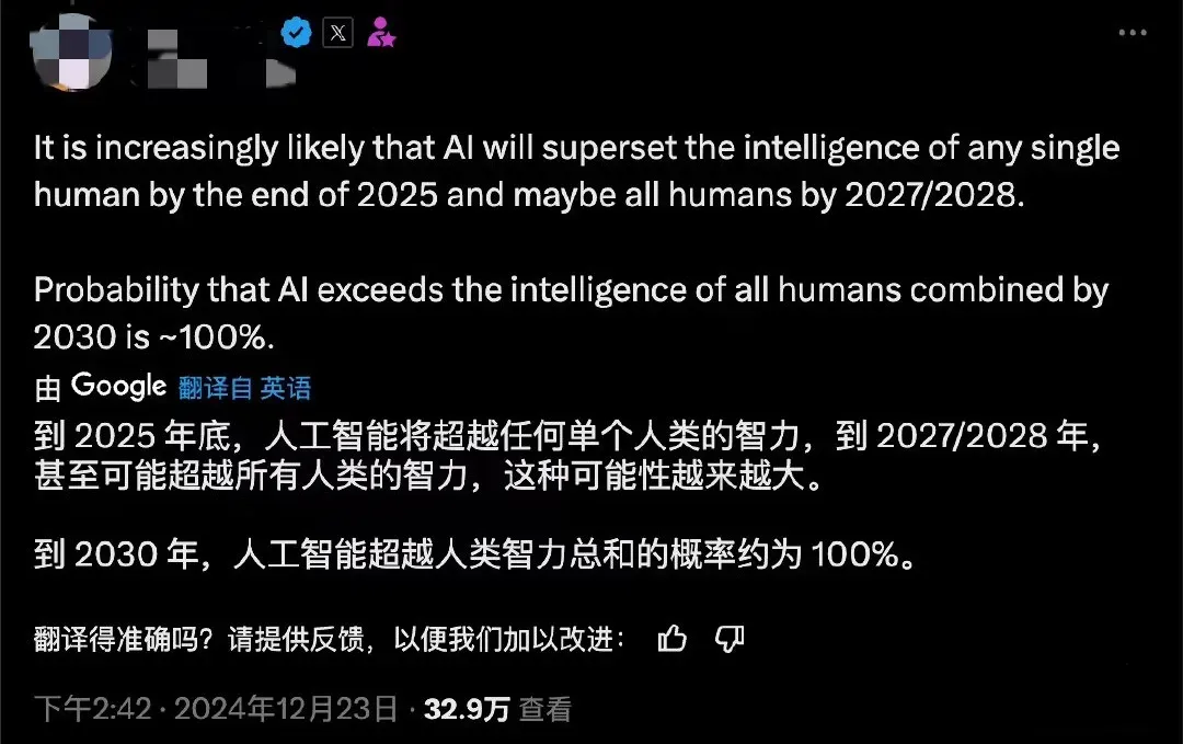 前几天,马斯克还在社交平台上大胆预言:到2030年,AI超越所有人类智力的可能性几乎是100%。