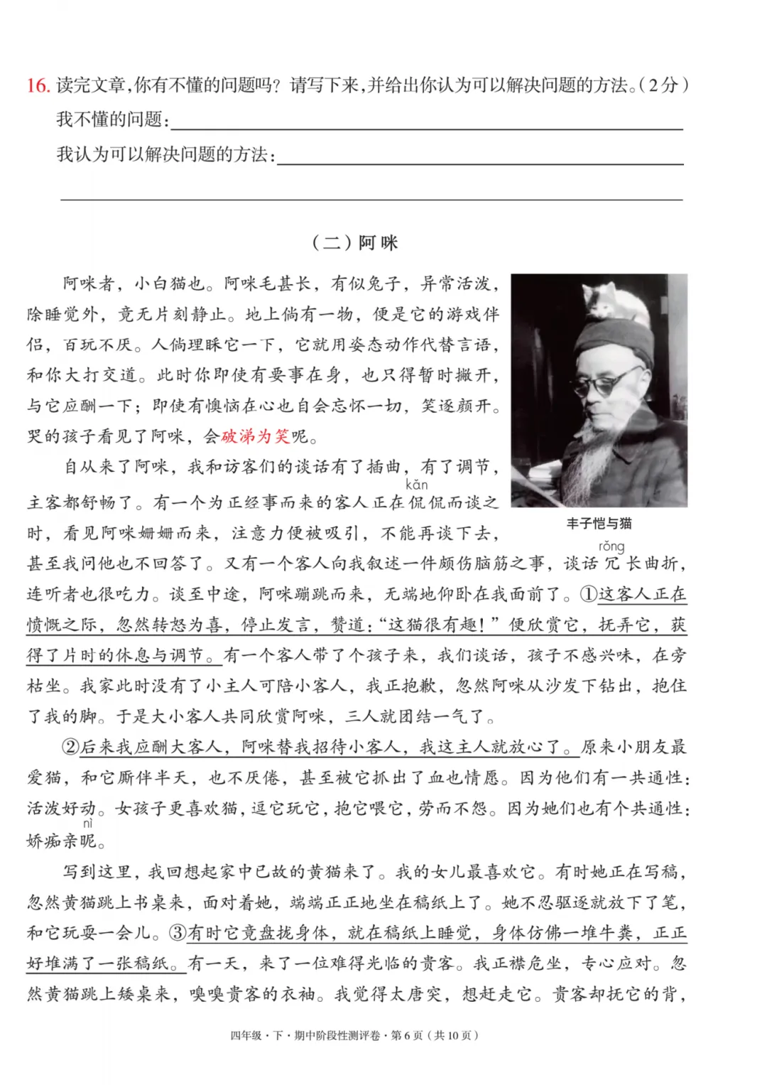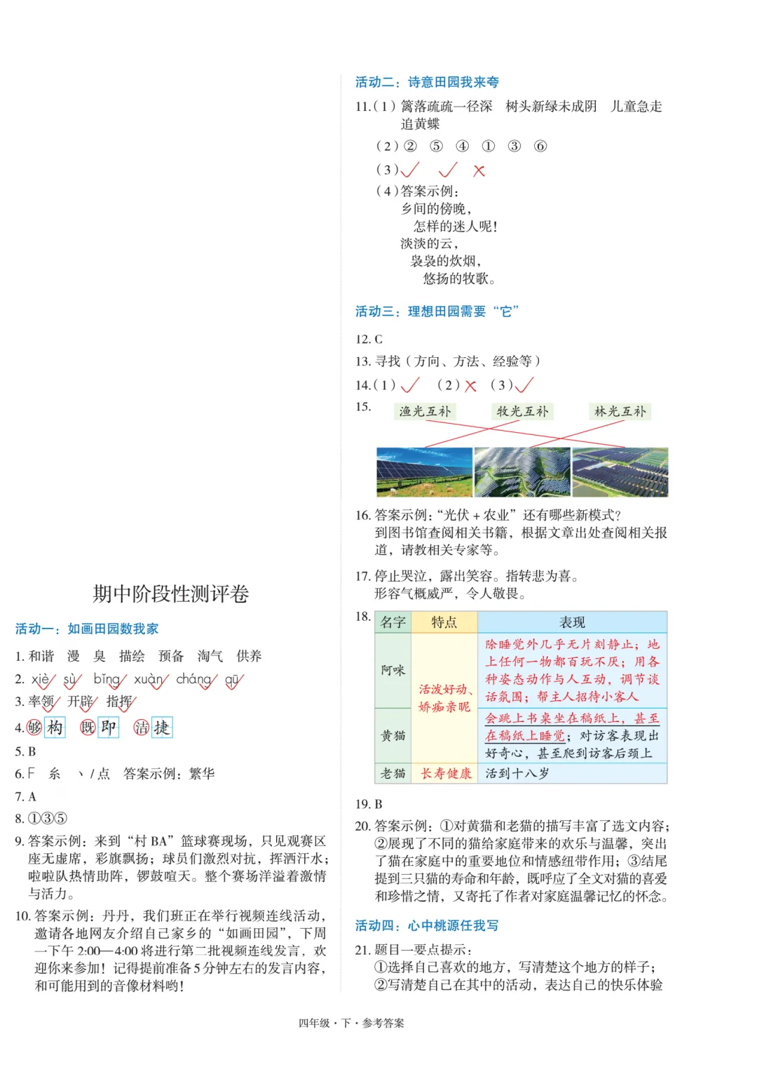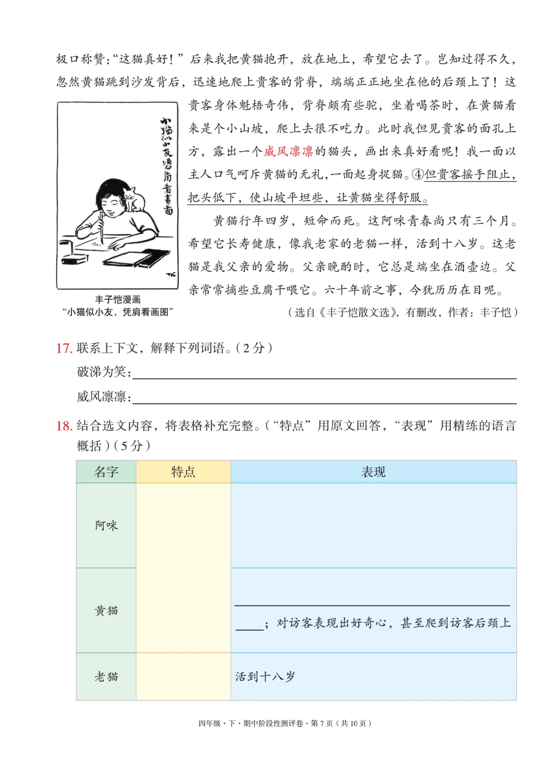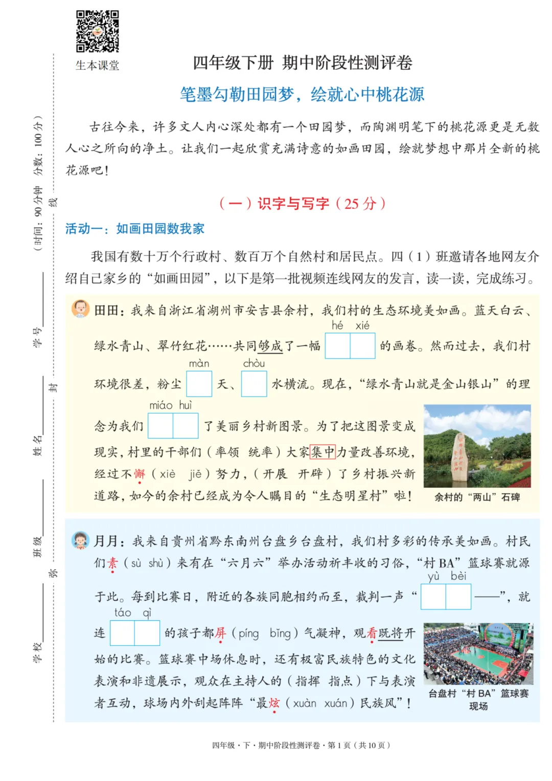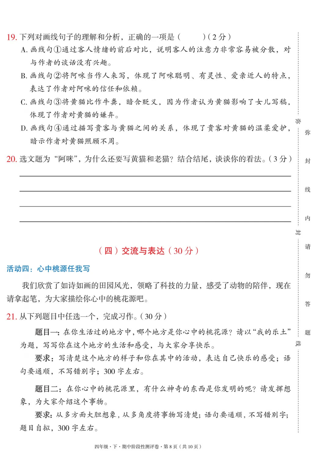 四年级下册语文期中测试卷附答案,电子版,可打印