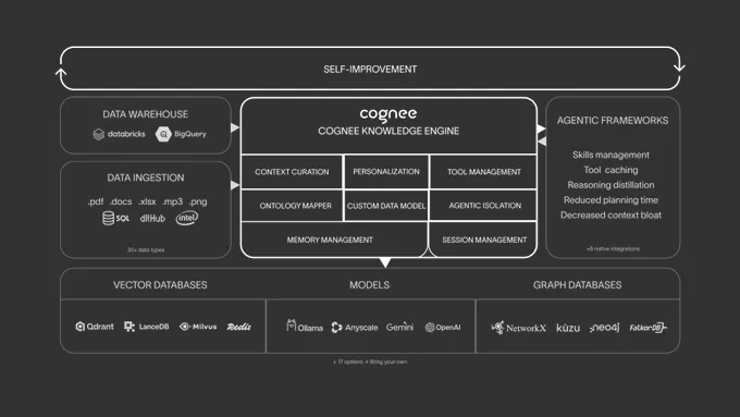 Cognee 提供了比较 Pythonic 的数据管道,能接 30 多种数据源,过往对话、文件、图像、音频转写这些都能往里塞。你要给 Agent 补长期记忆,不用再自己东拼西凑一堆 ingestion 脚本。