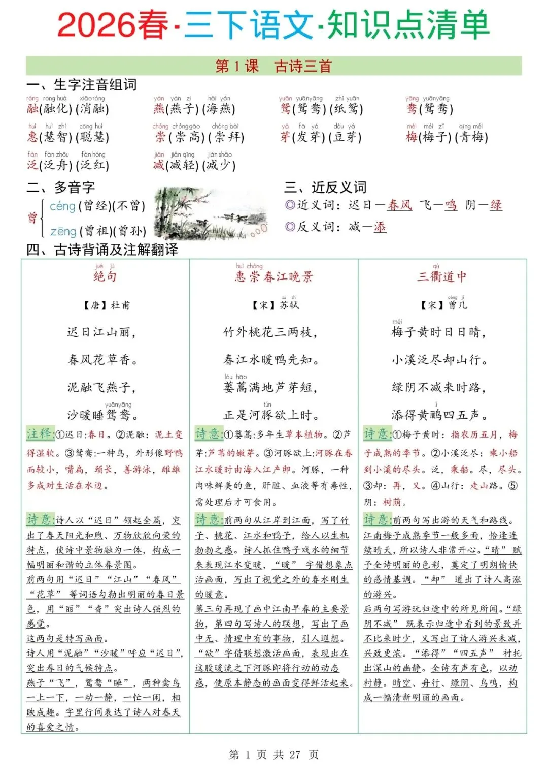 26春三年级下语文知识点清单(电子版可打印)