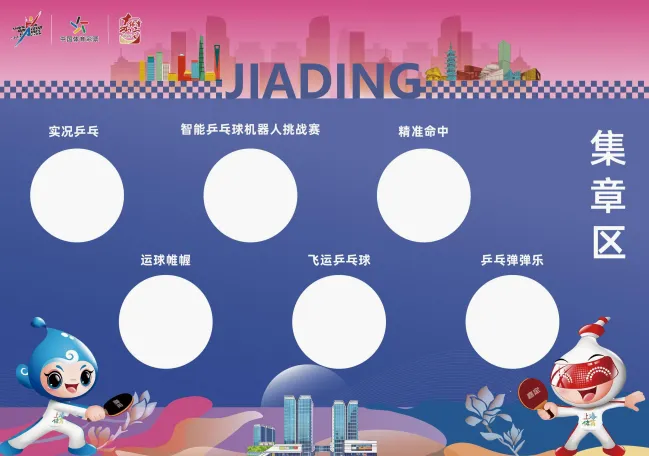观赛不过瘾?来嘉年华亲自上手体验!现场设置六大乒乓互动项目,科技感与趣味性拉满,完成挑战即可集印章兑换礼品(数量有限,先到先得)。