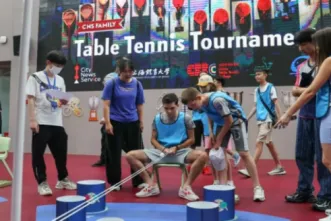 看跨界战队热血对决玩AI机器人+VR乒乓科技体验逛非遗+农产品+公益服务特色市集赢集章小礼品把乒乓快乐带回家