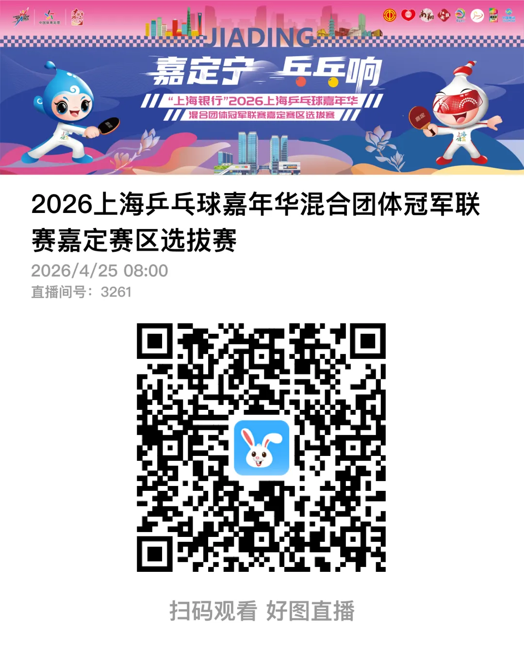 嘉定赛区的精彩角逐,将从这里开启——第一阶段区级预赛于4月25日-26日在嘉定区市民健身中心火热开打,第二阶段区级决赛于5月10日将在嘉亭荟城市生活广场举行,为乒乓爱好者搭建更高舞台。