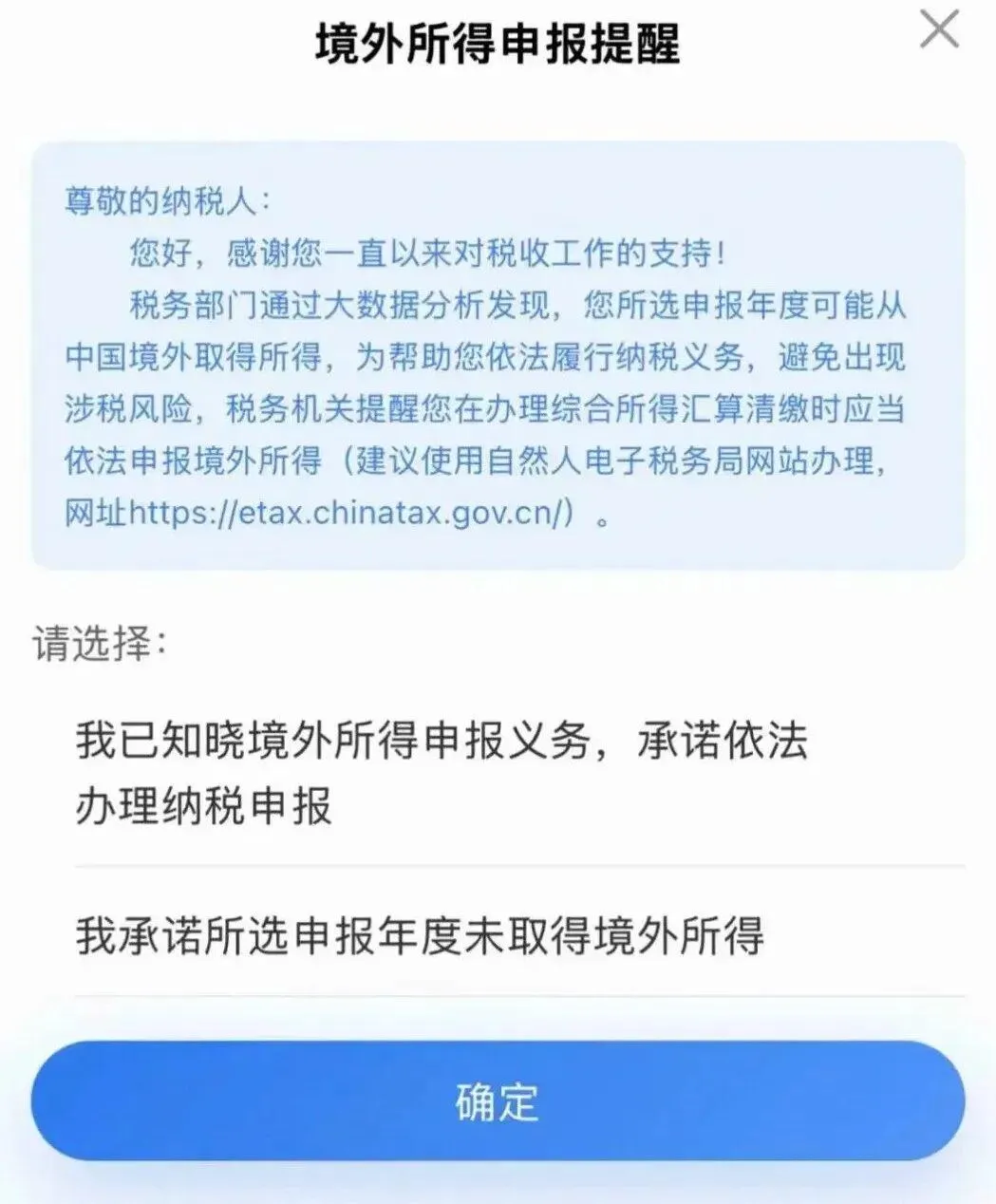 如果你以前申报过境外收入(不管是主动还是被提醒后补报的),系统也会自动标记,提醒你今年继续申报。