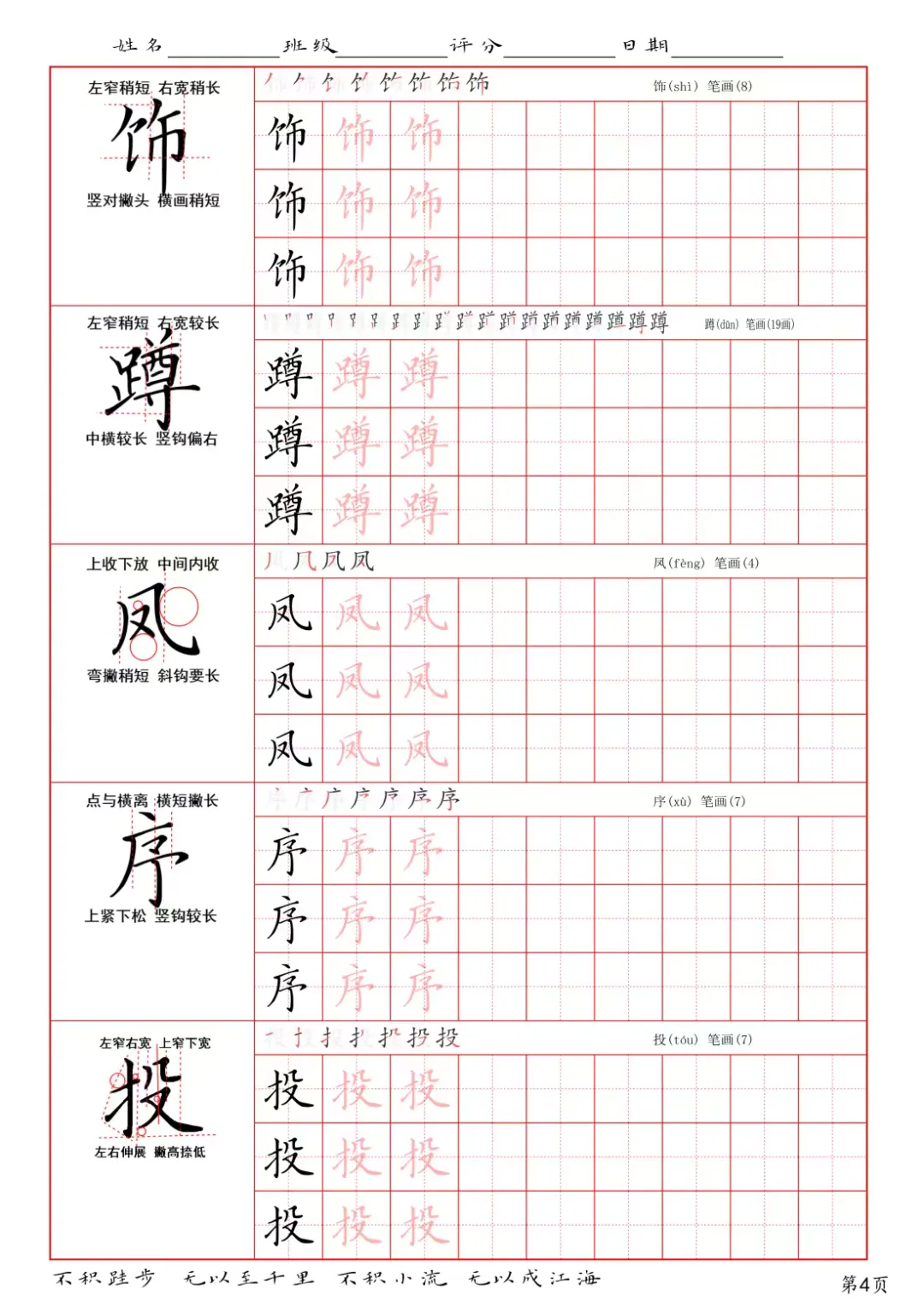 学校同步精讲生字,4年级下册,高清无水印电子版,共50页