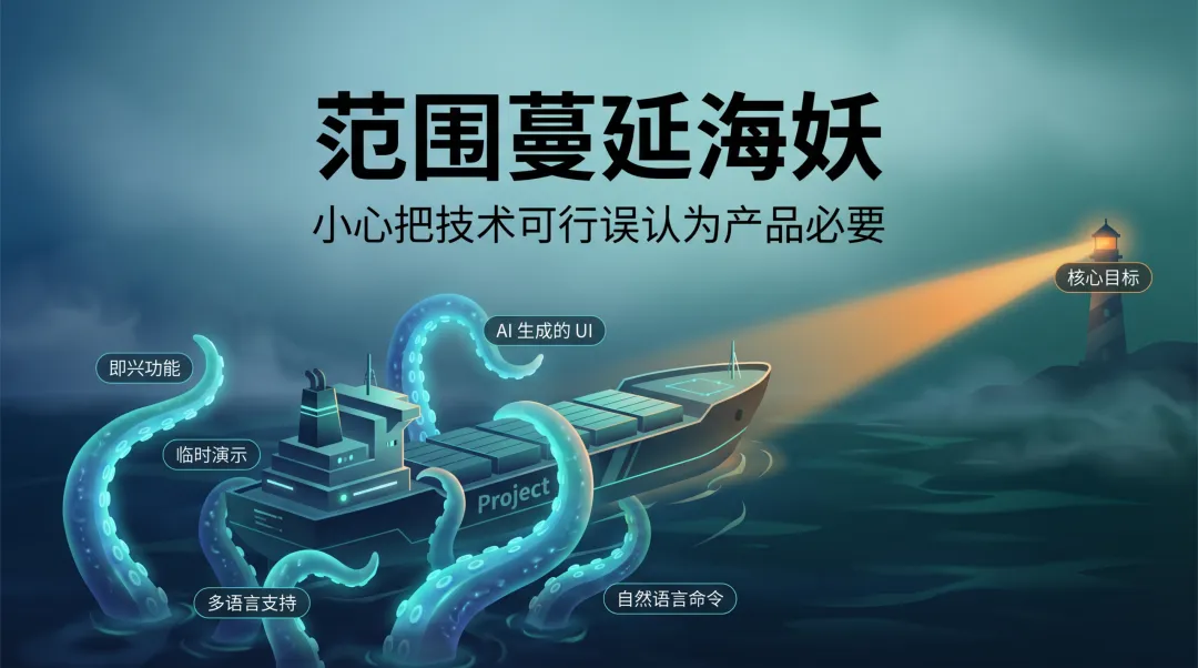 在软件开发与产品迭代的航程中,项目团队时常会遭遇一头名为“范围蔓延”(Scope Creep)的隐形巨兽。它悄无声息地出现,不断为项目增加新的触手,最终可能导致航船偏离预定目标,甚至搁浅在复杂度的暗礁上。随着人工智能(AI)辅助开发的普及,这头巨兽似乎获得了前所未有的力量,演化为一只更具迷惑性的范围蔓蔓延海妖(Scope Creep Kraken)。