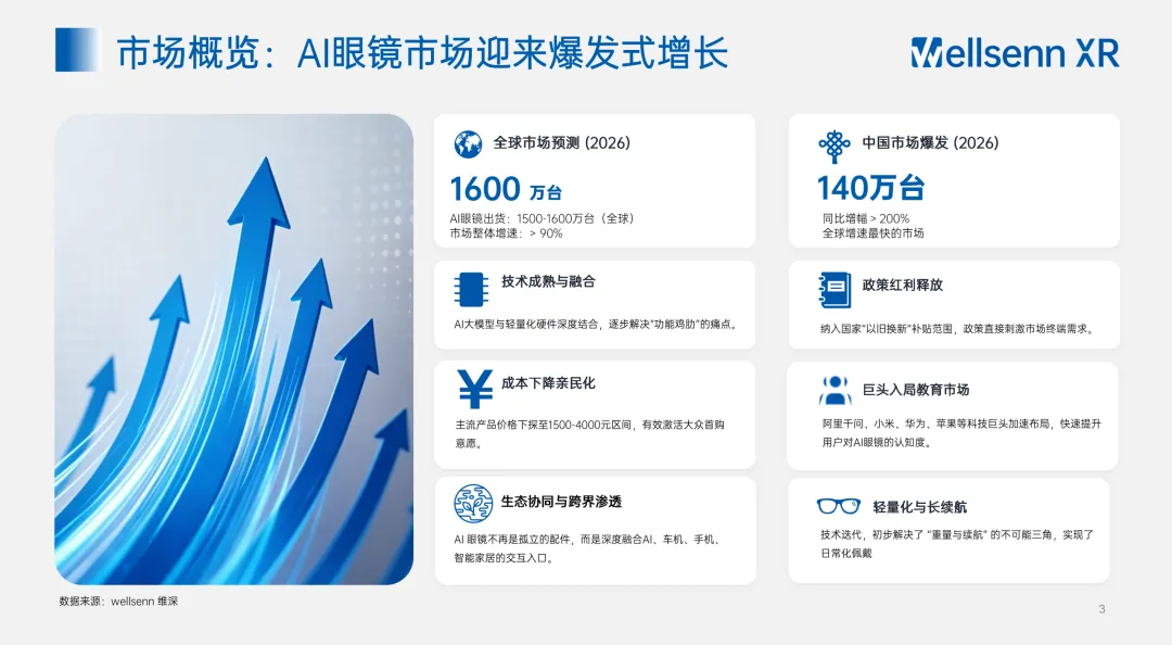 2026年全球AI眼镜市场进入高速增长期,预计中国市场增速超200%,行业整体处于快速起量阶段,用户关注度与产品供给同步提升。千问AI眼镜凭借稳定表现,成为这一波增长中的核心领跑者。