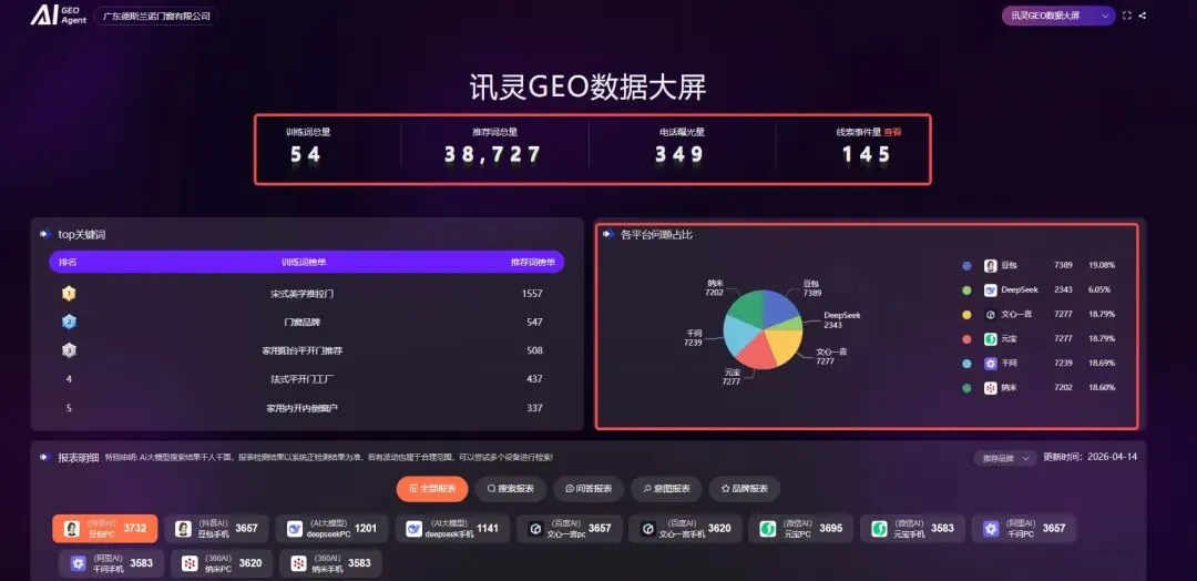 关键词语境广告38000个,寻盘150+,数据回流有迹可循。让Ai持续推荐你品牌公司