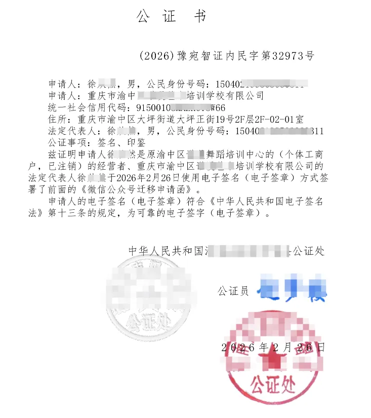 该怎么办理公众号迁移公证书?