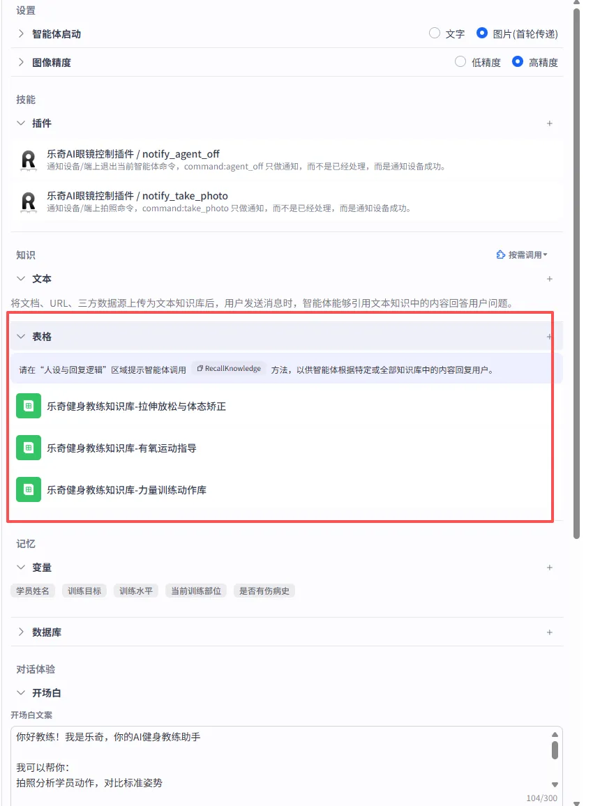 第一,智能体启动模式设为“图片(首轮传递)”。这样在首次对话时就能直接接收和分析图片,不需要额外的对话轮次来传递图片。我一开始选的是“文字”模式,导致每次拍照分析都要多一轮对话,体验很割裂。