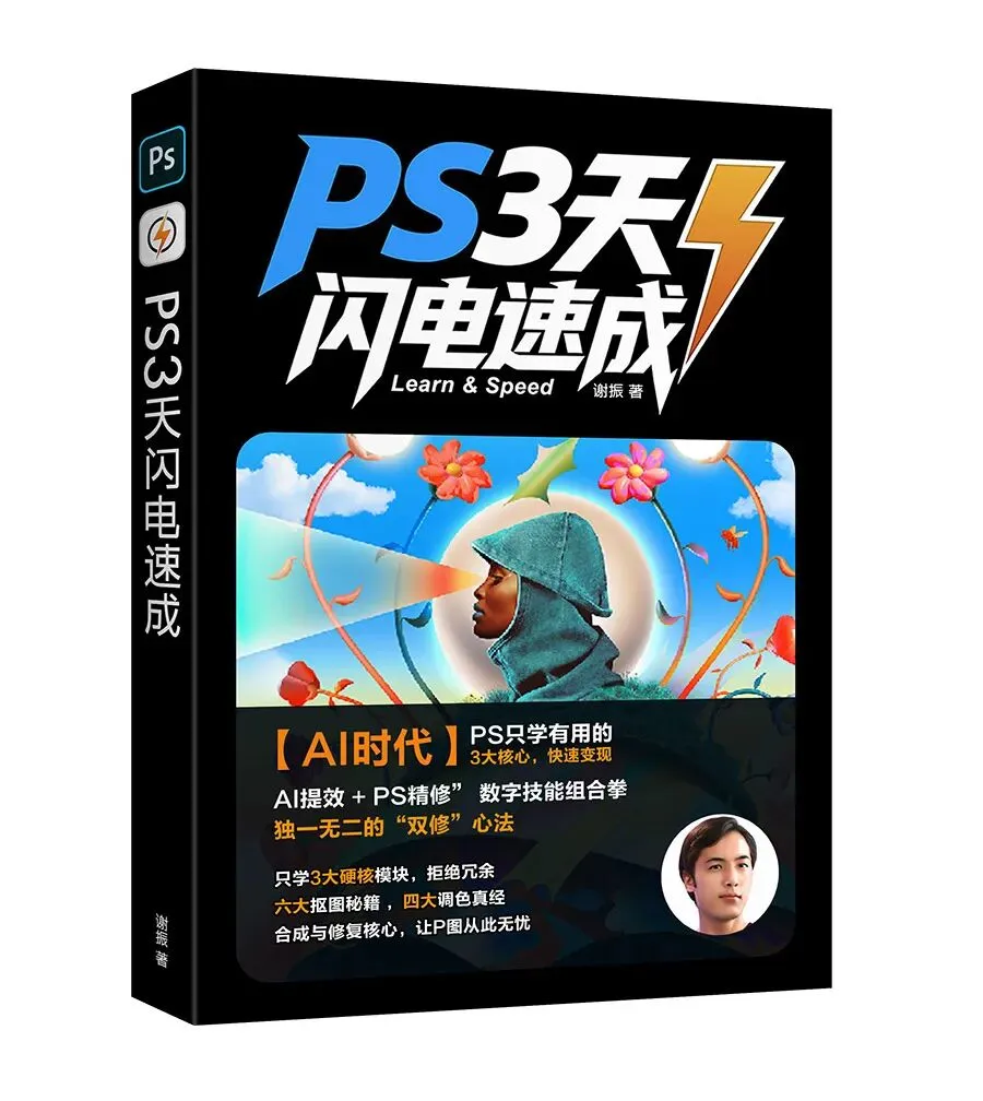 第二门是《PS 3天闪电速成》。它专门负责“精”,处理那些AI做完后还有些细节不完美的地方,教你用最高效的PS技巧解决常见难题。