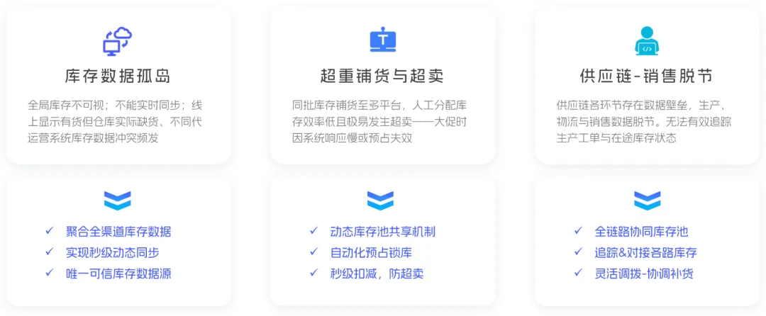 核心价值升级:从 “降本提效” 的工具价值,升级为支撑全渠道增长、即时零售、DTC 模式、跨境出海的战略能力底座,打通订单、库存、商品、财务、会员、售后全链路数据孤岛,实现 “一盘货、一本账、一个视图” 的全域协同。 -