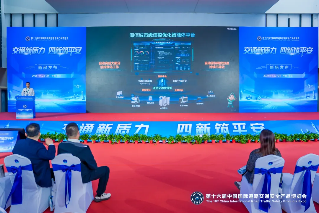 4月22日,第十六届中国国际道路交通安全产品博览会在南京开幕。作为智慧交通领域的深耕者,海信网络科技召开专场发布会,发布城市级信控优化智能体平台、通途星海AI信号机、智巡系列安防巡逻无人车,分别聚焦信控优化长效保持、路口中枢自主可控、立体安防无人化协同三大核心业务场景,致力于用智能化、国产化的方案切实解决一线交管工作中的痛点与难点。
