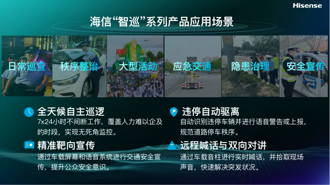 路面巡逻与违法处置是交管一线的高频、高强度工作,传统模式存在人力投入大、巡逻范围有限、效率较低等现实困难。海信此次发布的智巡系列无人车,正是面向这些业务痛点打造的实战化装备。