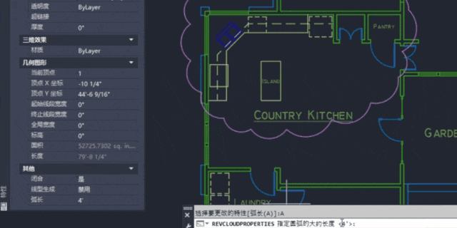 CAD2021中的修订云线现在包括其近似弧弦长(即每个圆弧段端点之间的距离)的单个值。第一次在图形中创建修订云线时,圆弧的尺寸取决于当前视图的对角线长度的百分比。这确保修订云线从合理尺寸开始。可以在“特性”选项板中通过其快捷菜单或使用新的 REVCLOUDPROPERTIES 命令更改选定修订云线对象的弧弦长。可以使用 REVCLOUDARCVARIANCE 系统变量来控制圆弧的弦长可以具有更大变化还是更均匀。将此系统变量设置为“OFF”可恢复之前创建修订云线的方式,而将其保留为“ON”将导致偏向手绘的外观。选择修订云线对象后,“特性”选项板现在将修订云线显示为对象类型(而不是多段线)。修订云线基本上仍然是多段线,但它们具有附加圆弧特性和用于在夹点样式之间切换的选项(REVCLOUDGRIPS 系统变量)