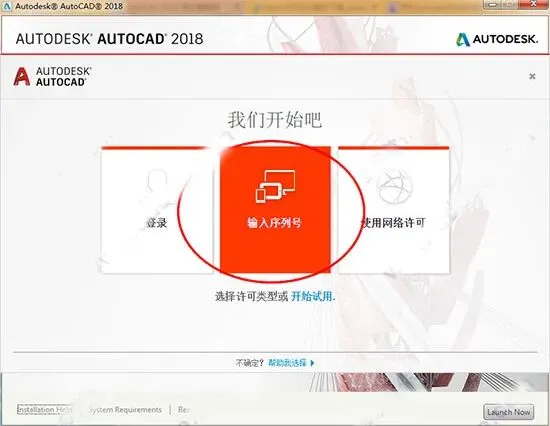 6、运行桌面AutoCAD2018快捷方式,点击“输入序列号”