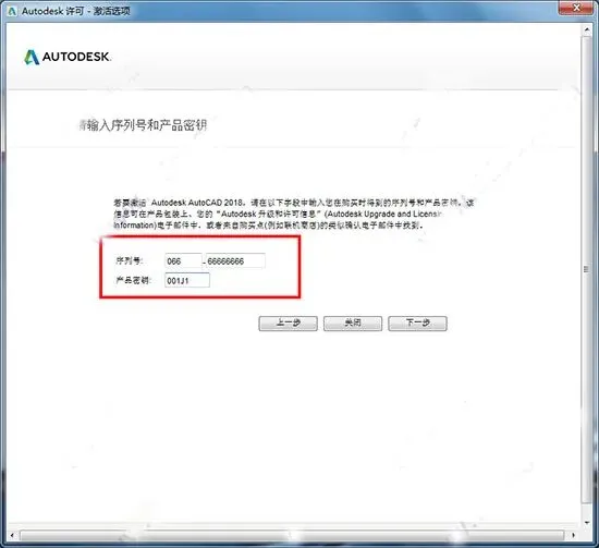 9、输入序列号“800-00000000”,输入密钥“001J1”