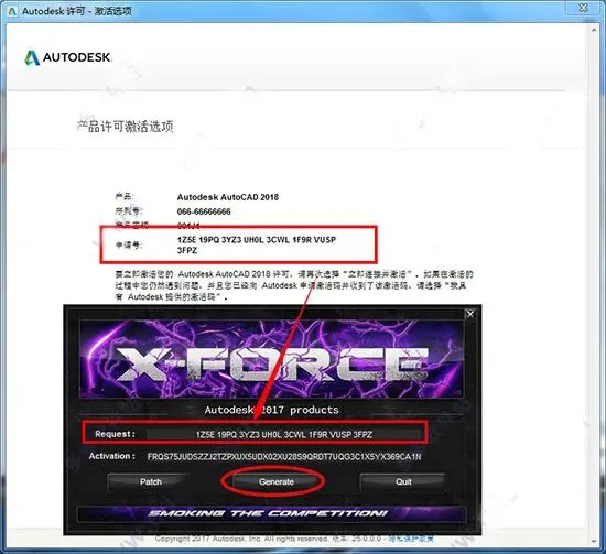 11、将“申请码”复制到注册机的第一项中,点击“Generate”,生成激活码