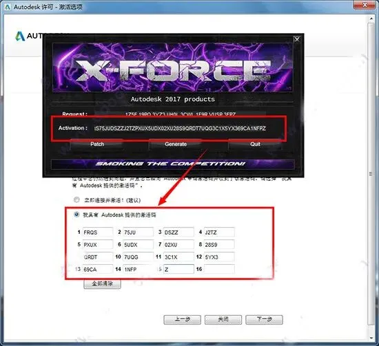 12、点击“我具有Atutodesk提供的激活码”将生成的激活码复制到入内,点击NEXT