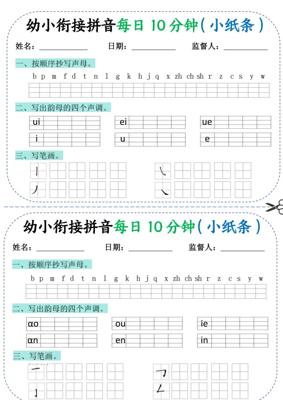 「幼小衔接拼音每日一练10分钟20天(拼音声调笔画)10页.pdf」