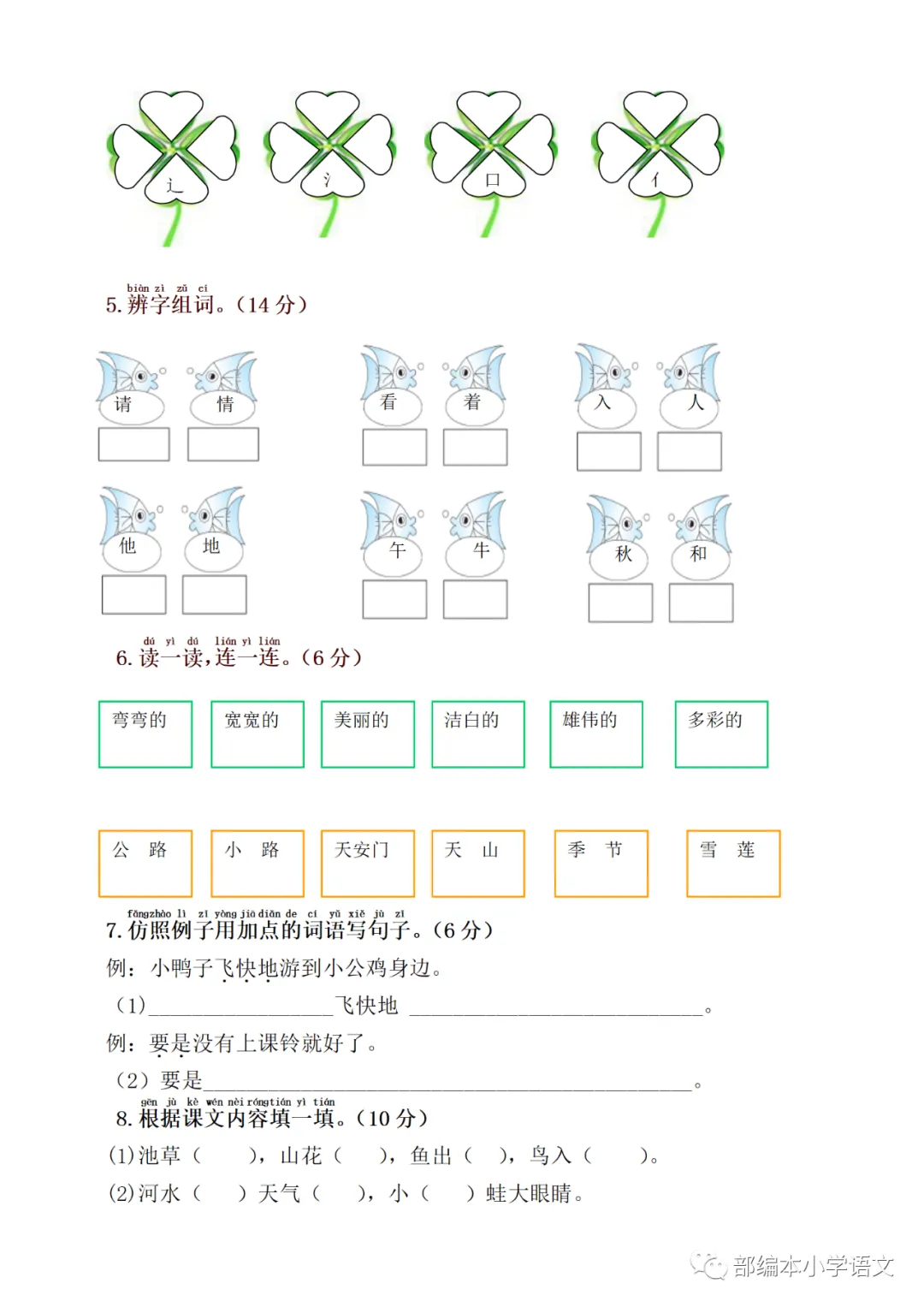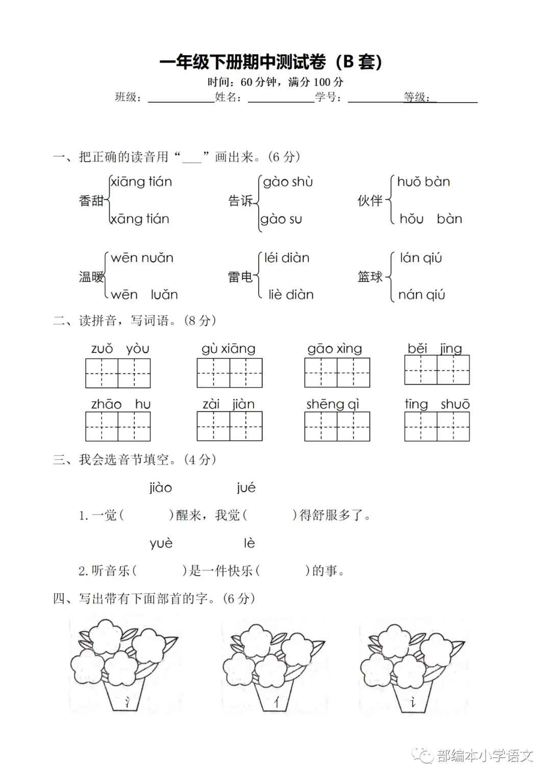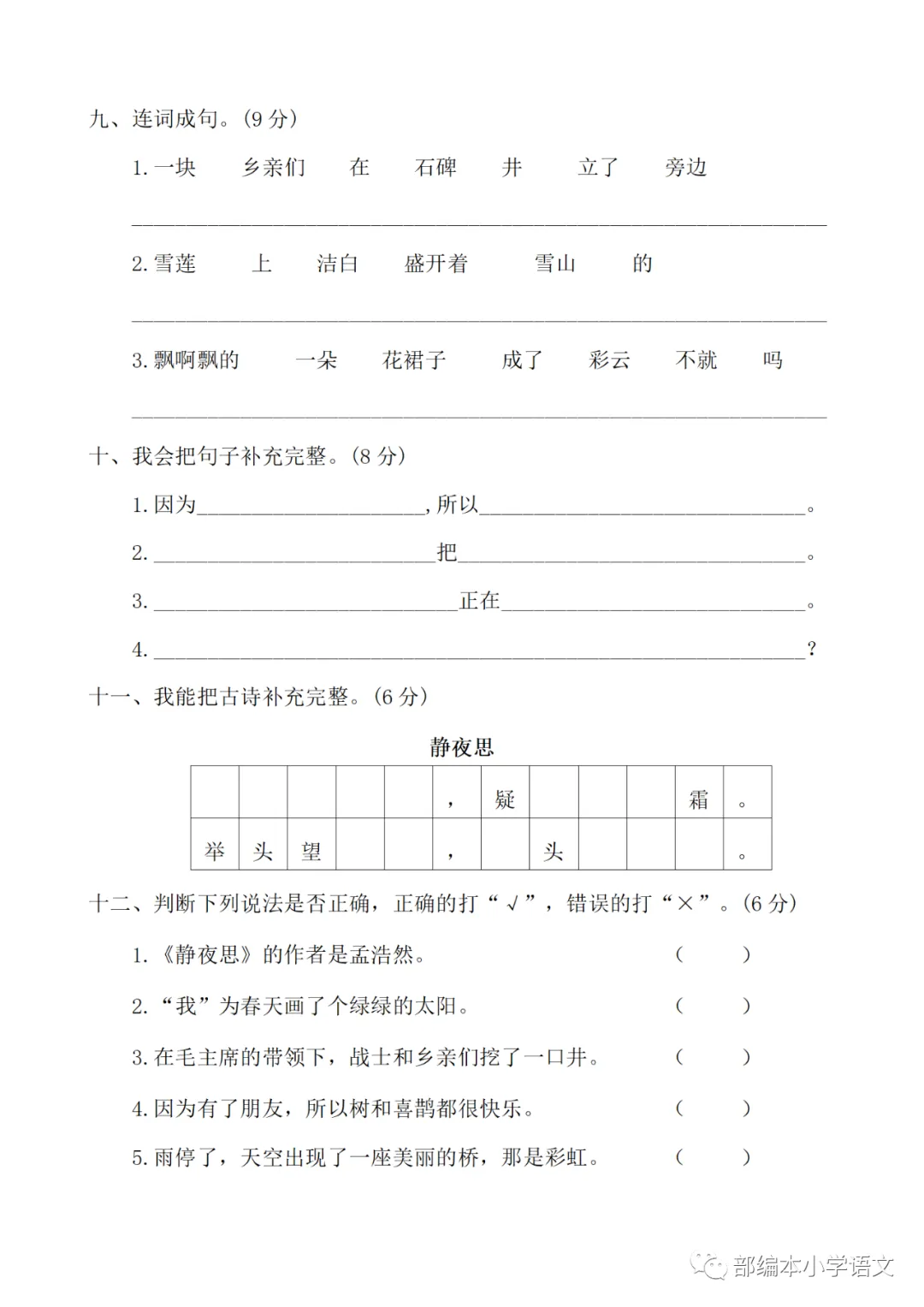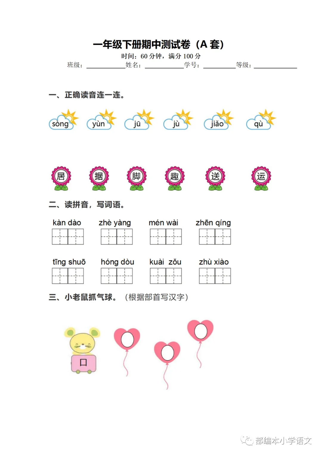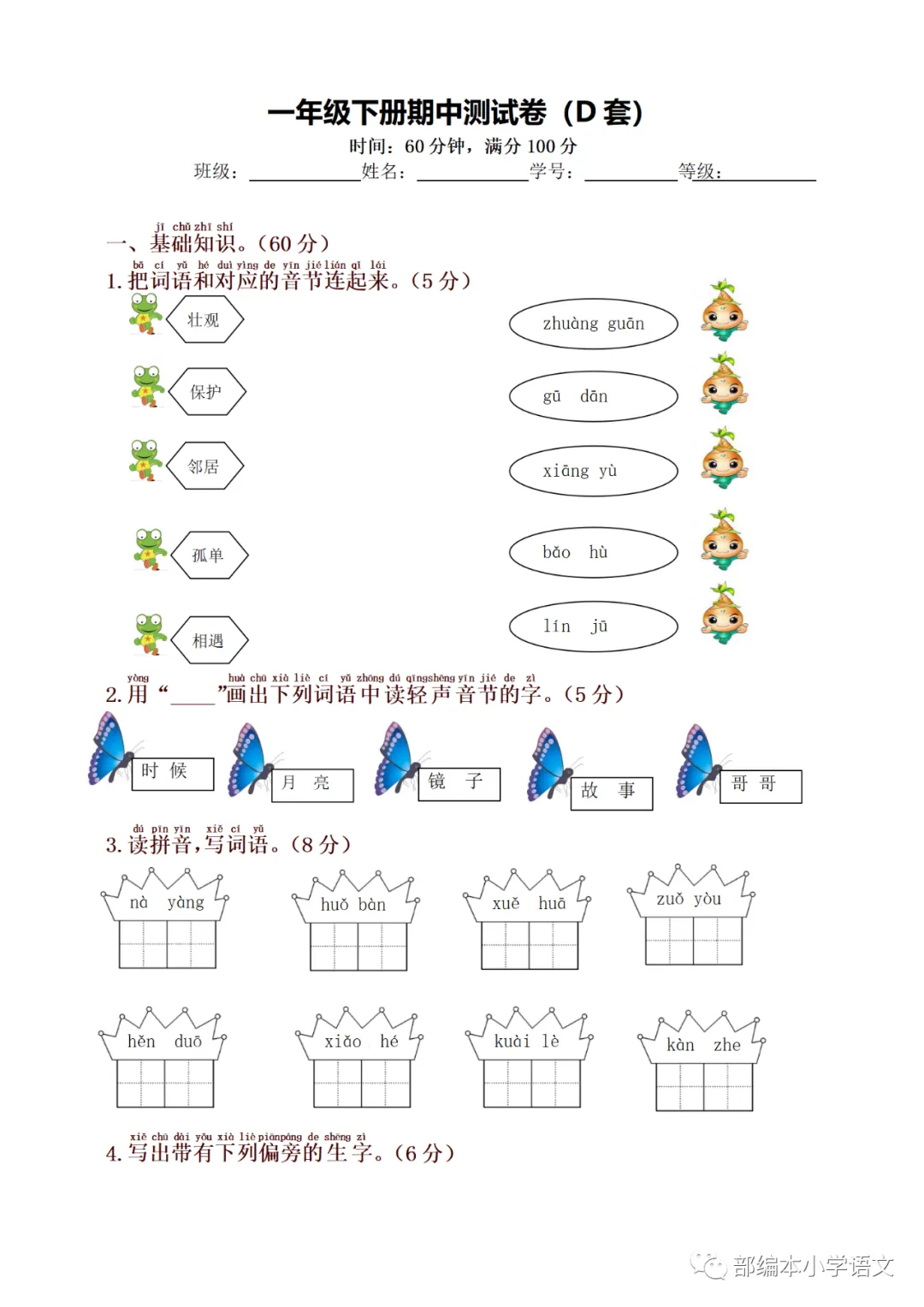 一年级下册期中综合卷5套,免费下载! 课文朗读 微课学习 课件教案 生字字帖 每课一练 必背内容 课文划重点 课堂笔记 晨读晚背 温馨提示:保存图片打印或拉到文末下载电子版 01 02 03 04 05 声明:本公众号尊重原创,素材来源网络,好的内容值得分享,如有侵权请联系删除。更多资料请点击“中小学各学科上下册空中课堂、微课汇总”。 ▼ 期中资料复习 部编语文一(下)期中检测卷① 部编语文一(下)期中检测卷② 部编语文一(下)期中检测卷③ 部编语文一(下)期中检测卷④ 部编语文一(下)期中检测卷⑤ 部编语文一(下)期中检测卷⑥ 一(下)期中字词句专项复习检测卷 一(下)期中必考文学常识 一(下)期中必考基础知识积累与应用 一(下)期中必考综合复习专项 下载电子版方式 ▲扫码关注部编本小学语文 在公众号消息框(后台) 回复:试卷练习 资料下载视频讲解(点击观看) ↓↓↓ 点击下方『阅读原文』一年级下册语文资料合集