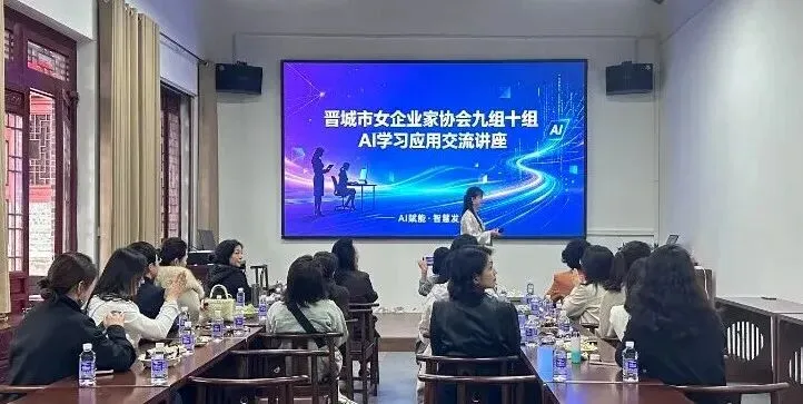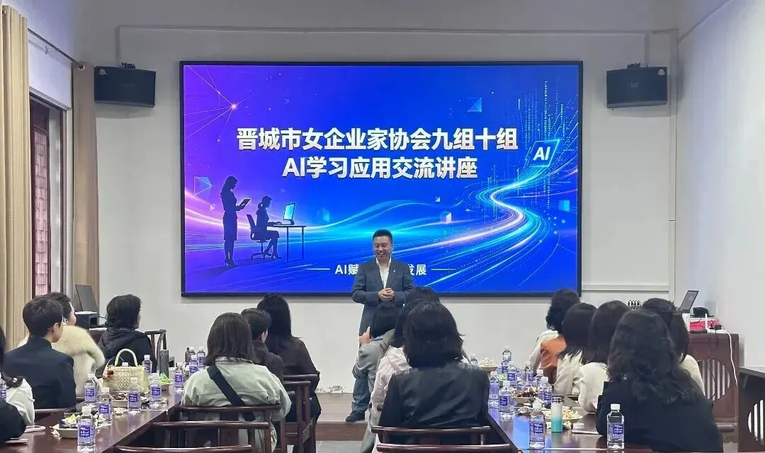 为拥抱AI时代新技能,拓宽企业经营发展新思路,近日,晋城市女企业家协会第九组、十组成员举办了一场主题鲜明、实用性极强的AI学习应用交流讲座。现场众多优秀女企业家齐聚一堂,并特别邀请了AI时代·飞达商学的刘刚老师前来专题授课,围绕 AI 商业落地、智能办公应用、企业经营增效等实用内容深度分享。