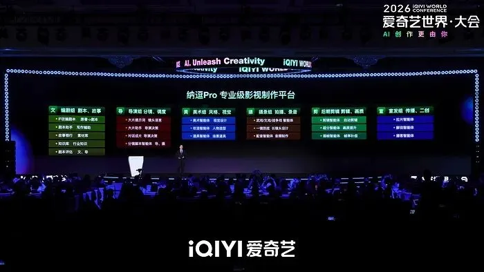 4 月 20 日爱奇艺世界大会上,平台高调官宣纳逗 Pro AI 艺人库,宣称已有超百位艺人入库合作,现场点名马苏、陈哲远等人,对外标榜这套技术能够对接创作资源、“解放演员生产力”。