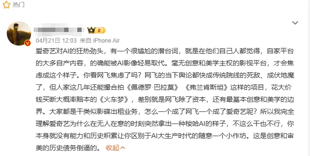 爱奇艺用AI“炼化”百位艺人冲上热搜!全网质疑影视要变预制菜