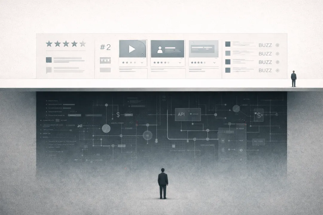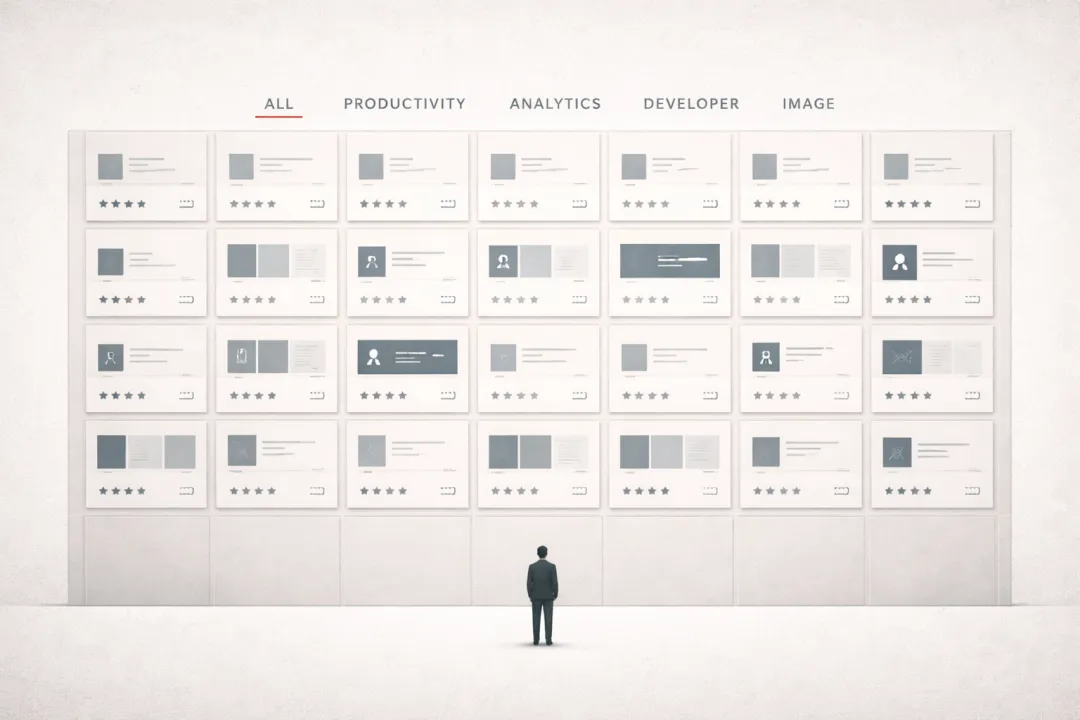 > 统一货架没有成立,App Annie 式的统一情报更无从谈起我做 App 研究那几年,最值钱的不是哪个分析师更会写报告,而是市场先替所有人铺好了一张统一地图:类目、国家、榜单、评论、价格、下载,先被平台压成了同一套坐标系。你拉美国区、看日本区、追工具类、跟踪付费榜,背后是一张可以横向比较的公共货架。今天看 AI 工具市场,我最强烈的感觉恰好相反:不是信息不够多,而是坐标系先没了。GitHub 上有链接,目录站里有 logo,社交媒体上跑着 demo,VS Code Marketplace、GPT Store、Hugging Face、浏览器扩展、各类 IDE 与 agent 平台各有各的入口和列表。看起来入口很多,但真正的安装、调用、付费和留存,并不发生在同一个可见层里。所以我现在更关心的,不是谁会成为 AI 时代的 App Store 或 App Annie,而是这个市场还剩不剩让它们成立的前提。