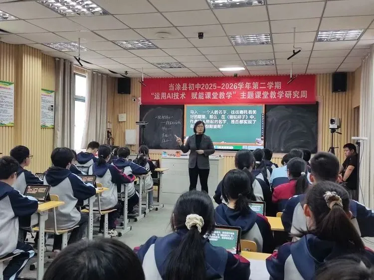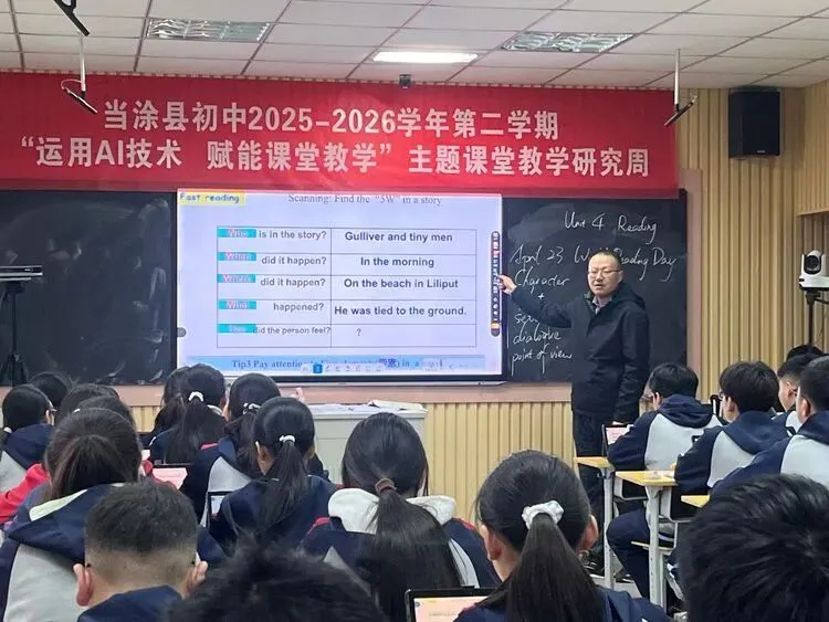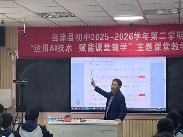 跨域研思促均衡 AI赋能共致远 ——泗县夏邱中心学校赴当涂县提暑学校参加县教研周活动 跨域研思促均衡 AI赋能共致远 ——泗县夏邱中心学校赴当涂县提暑学校参加县教研周活动 以研促教,以智赋能。乘着皖北基础教育优质资源扩容工程的东风,当涂县姑溪初级中学以县初中教学研究周为契机,4月21日–22日,邀请泗县夏邱中心学校教师赴当涂县提署学校,围绕“运用AI技术,赋能课堂教学”主题,开展语文、英语、道德与法治学科跨区域教研交流,探索人工智能与课堂教学深度融合路径。 道法铸魂润智 泗县夏邱中心学校焦美霖老师执教七年级道德与法治《做核心思想理念的传承者》,围绕政治认同、道德修养、法治观念、健全人格、责任意识五大目标展开,依托时政素材与情境教学,解读仁爱、民本、诚信、正义、和合、大同六大理念,引导学生认同文化、践行理念、担当使命。 语文文韵融智 当涂县提暑学校高和宝老师执教《北冥有鱼》,将名家范读、鲲鹏动画与沉浸式情景互动相结合,搭建学生与庄子的跨时空对话;借助AI实时纠错,夯实文言翻译,深挖鲲鹏意象内涵,关联“志存高远”的文化精神,构建“问题—作答—反馈”的教学闭环。 王乐君老师聚焦《骆驼祥子》整本书阅读,以“人物名字的反讽”为切入点,运用数字化资源破解教学难点。课堂融入AI创作歌曲,通过在线互动选择、可视化呈现祥子“三起三落”经历,搭配AI智能助手实时答疑,充分提升学生参与度与实践能力。 泗县夏邱中心泗学校徐可老师紧扣新课标,执教《紫藤萝瀑布》赏析课。通过对比文本描写、还原创作背景、分组探究等活动,引导学生把握文章主旨;融合绘画与微创作,以“紫藤萝与生活”为引,让学生感悟生命之美,全面培育语文核心素养。 英语读思启智 当涂县提暑学校武锐老师执教八年级英语《Unit 4 A good read Reading》(译林版),以《格列佛游记》“小人国”节选为语篇,围绕语言能力、文化意识、思维品质、学习能力四大目标,通过“预读-读中-读后”分层活动,引导学生梳理情节、分析人物与语言特色,借助分层作业巩固提升,聚焦小说阅读策略培养,激发跨文化阅读兴趣,发展批判性思维与创新表达能力。 泗县夏邱中心学校李金圆老师执教七年级下册译林版英语Unit 5 Animal Friends — Reading 1。李老师以宠物诗歌为载体,通过视频导入、读前预测、读中品韵析文、读后朗诵创作与情感升华等环节,引导学生感知诗歌韵律、理解文本细节、尝试创作押韵小诗,帮助学生树立关爱动物、尊重生命的意识,扎实落实英语学科核心素养。 最后,提署学校李婷婷老师带来《AI赋能英语教学评一体化》微讲座。李老师围绕AI工具介绍、教育应用场景与实践案例展开分享,结合教学评一体化理念,为教师搭建AI与英语课堂融合的实践路径,助力提升教师数字素养与课堂教学效能。 点评研思聚智 本次跨区域教研活动紧扣“AI赋能课堂教学”主题,语文、英语、道法三学科课堂各具特色、精彩纷呈。授课教师均能将信息技术与学科教学深度融合,注重素养导向、活动设计与评价闭环,教学方法灵活、学生主体地位凸显,充分展现出扎实的教学功底与创新的教学理念。现场参与教师认真观摩、积极交流,语文、英语、道法学科教研员也对课堂亮点与改进方向进行了精准点评,为后续教学优化提供了专业指引。 独行快,众行远;教无涯,研不止。此次皖北基础教育优质资源扩容工程背景下的跨区域教研活动,搭建了校际交流互鉴的优质平台,实现了理念共享、方法共研、质量共进。参与教师在观摩中提升、在研讨中成长,为后续推动AI技术与学科教学深度融合、打造高效智慧课堂奠定坚实基础。 ——END—— 编辑:陶明花 初审:陶明花 复审:魏前登 终审:杨礼献