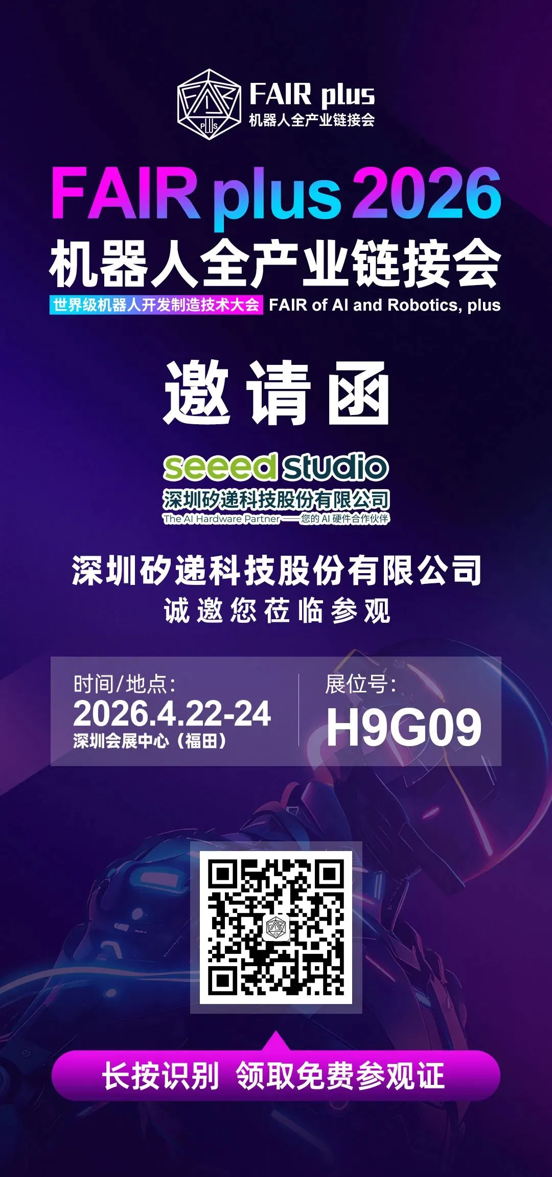 2026年4月22日–24日,矽递科技(Seeed Studio)—— 全球领先的开源硬件与AI边缘计算解决方案提供商将携其面向工业、科研、教育及具身智能机器人等场景的全系AI硬件产品,亮相2026 FairPlus机器人全产业链展会,全面展示从边缘推理机器人“大脑” 到开源机器人实现感知与决策的完整技术栈。欢迎大家来到Seeed Studio矽递科技展位共同探索具身机器人的最前沿!