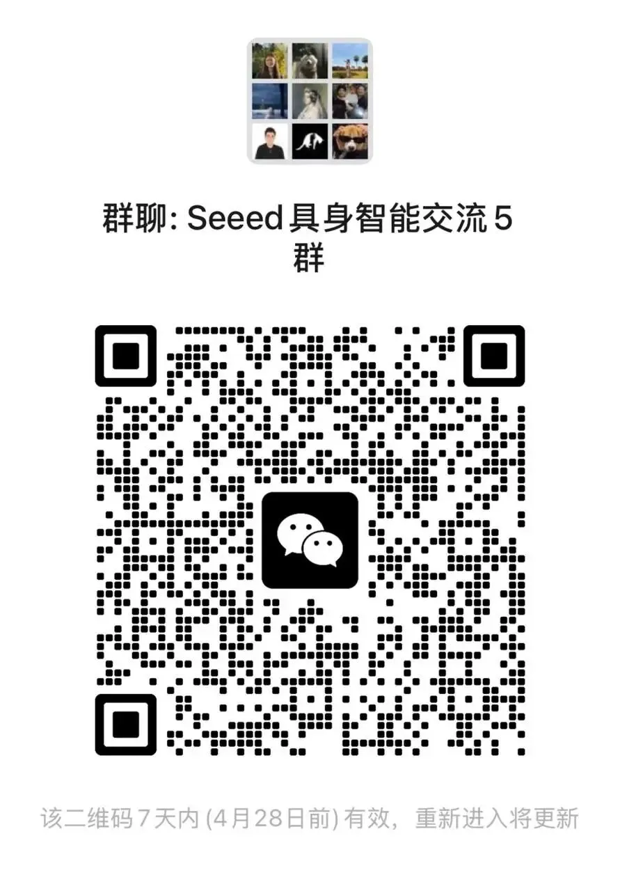 同时欢迎大家加入Seeed Studio 具身智能交流群,共同探讨AI机器人最前沿资讯 与真实开发者们的开发经历,互相交流,共同进步!