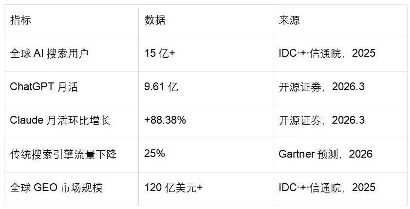 • 2026年1月:中国信息通信研究院发起《生成式引擎优化(GEO)服务可信基本要求》起草