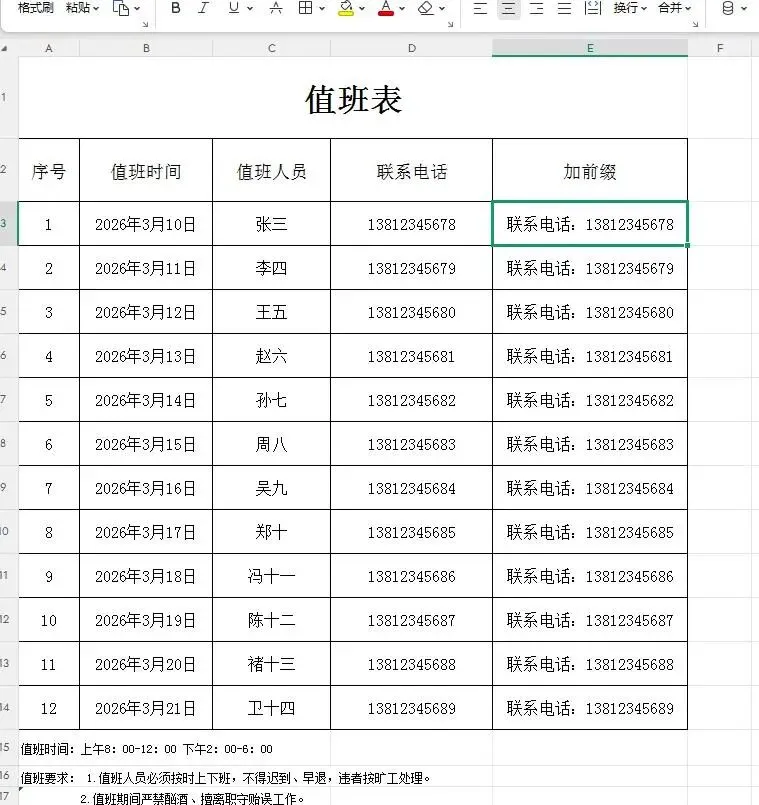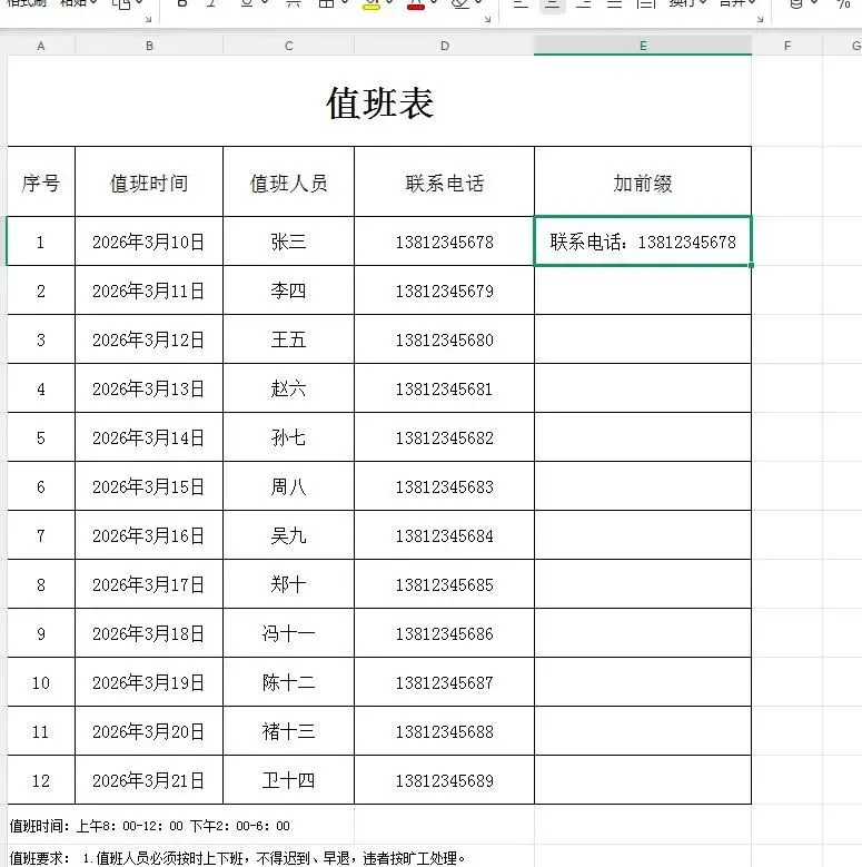 加前缀,如将 13812345678 转为 联系电话:13812345678