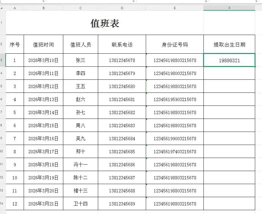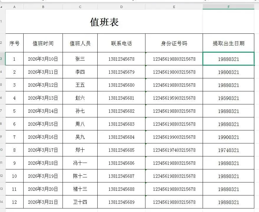 按上述操作还可以将手机号加密,如将 13812345678 转为 138****5678,更改日期格式,如将 20260417 转为 2026-04-17 或 2026年4月17日 等等。