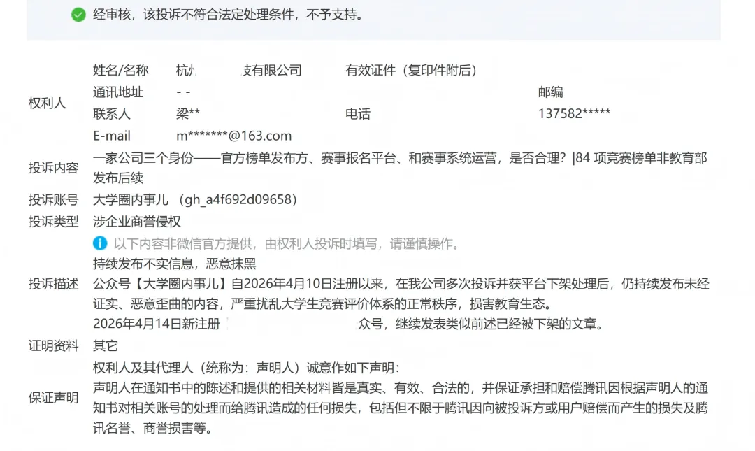 我们不会因为投诉而停止对公开信息的梳理和追问。我们会继续以事实为基础,以公开信息为依据,记录这个涉及数百万大学生利益的竞赛评价体系。