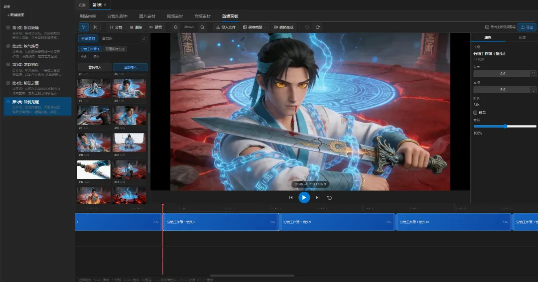分镜手动微调:AI生成的分镜可自由调整时长、顺序、画面细节,添加个性化镜头语言 -